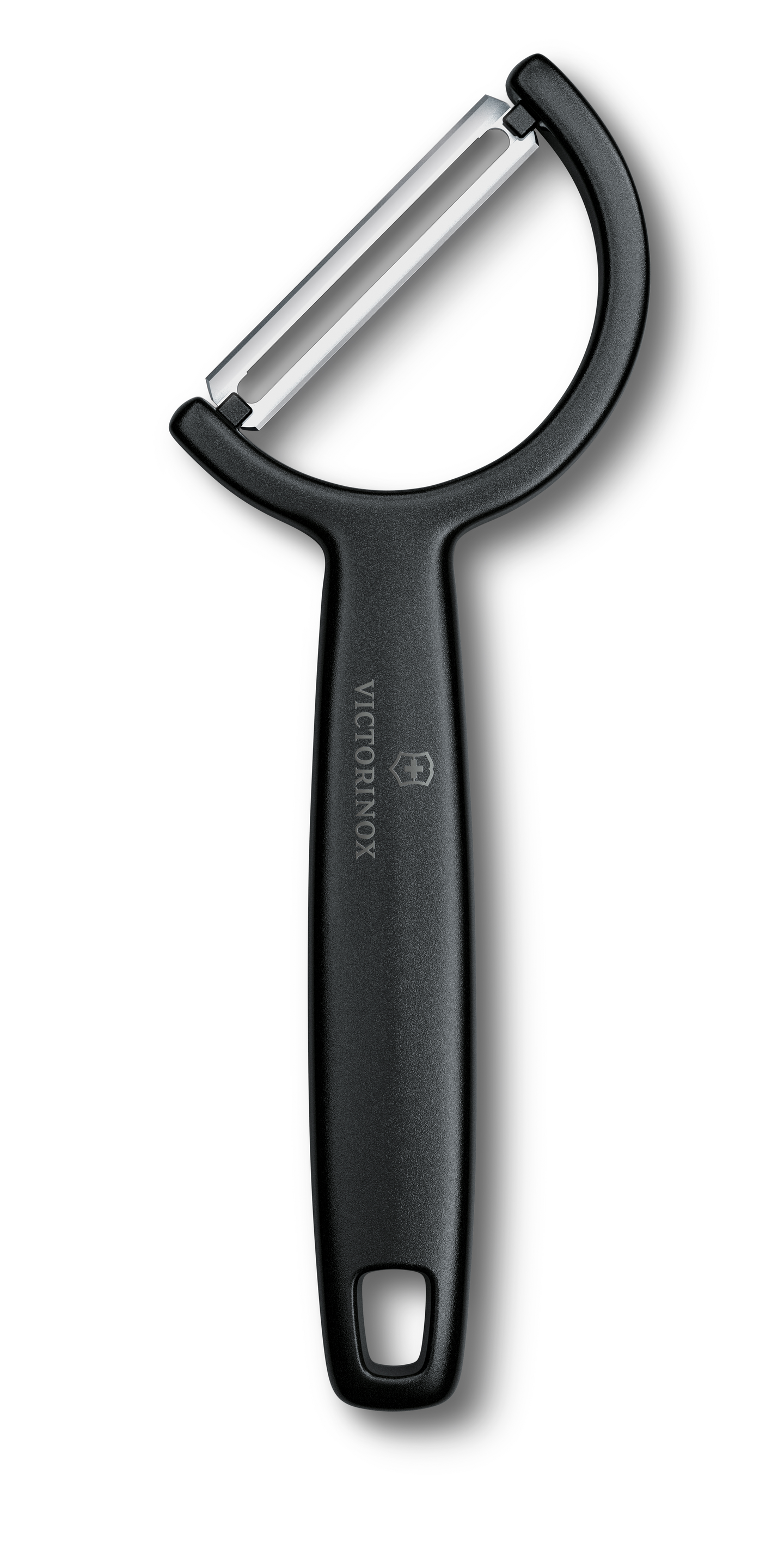 Rho-kuorijan äärimmäisen terävä, ruostumattomasta teräksestä valmistettu terä on asetettu 45°:n kulmaan, mikä vähentää ranteen väsymistä isoja määriä kuorittaessa. Yksipuolinen suora terä on ihanteellinen pitkien, kovakuoristen vihannesten (esim. porkkana, kurkku) kuorimiseen. Kääntyvyyden ansiosta terä mukautuu kuorittavan raaka-aineen pinnanmuotoihin, mikä tekee kuorimisesta tehokasta ja nopeaa. Terä myös kuorii läheltä pintaa, jolloin hävikkiä syntyy vähemmän. Kuorija on Sveitsissä valmistettu, astianpesukoneen kestävä, ja säilyttää terävyytensä pitkään. Yksipuolisen viiston terän vuoksi kuorija sopii vain oikeakätisille.