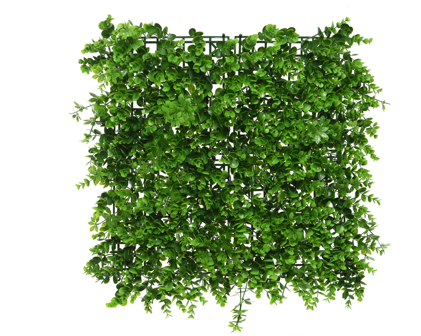 Helppohoitonen viherseinä sisustukseen, muistuttaa eukalyptusta. Materiaali muovia. Koko 50 x 50 cm.