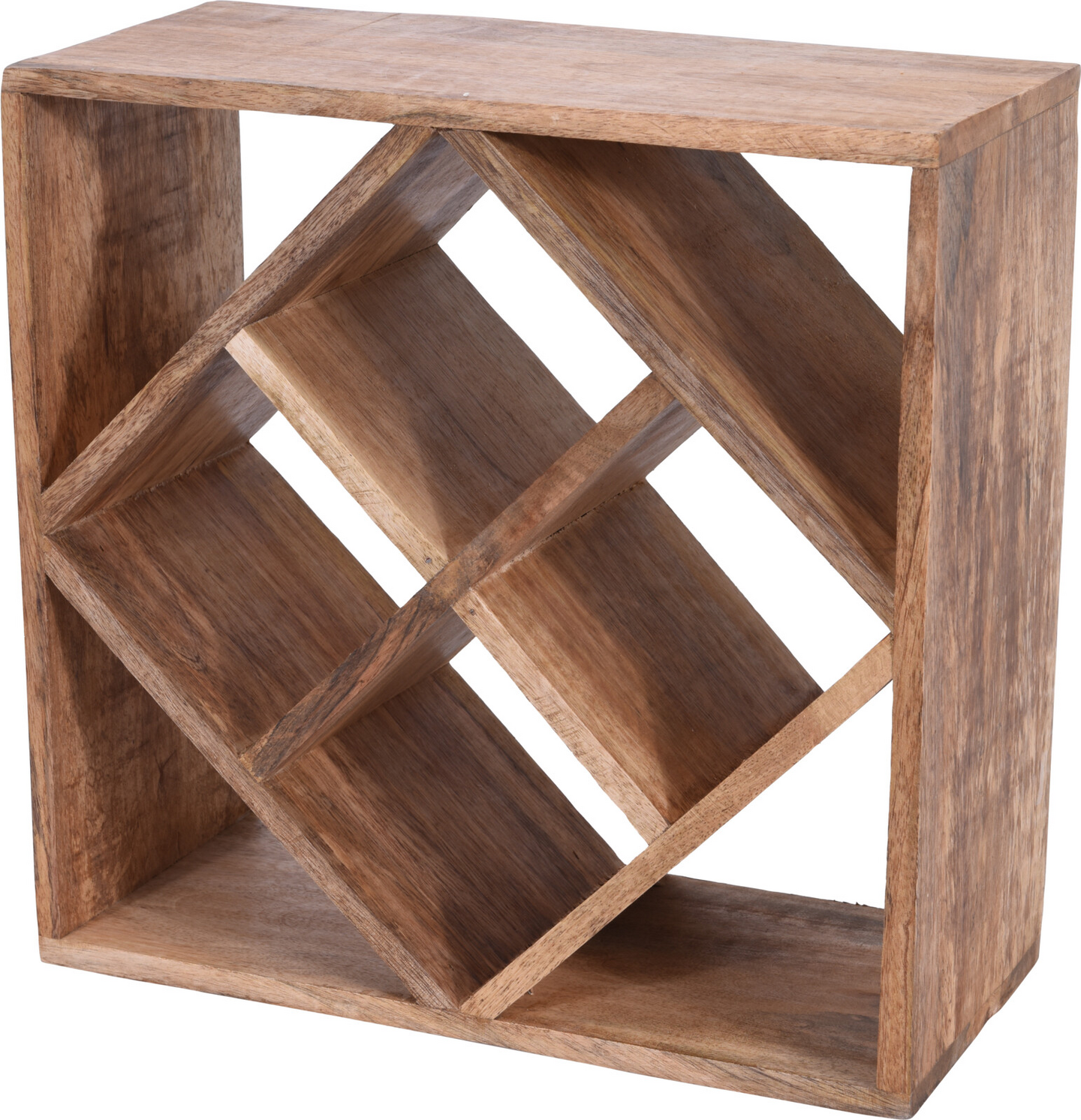 Viinipulloteline puuta. Asetetaan pöytätasolle tai lattialle. Telineeseen mahtuu jopa 12 pulloa. Ulkomitat 33 x 33cm, syvyys 15 cm.