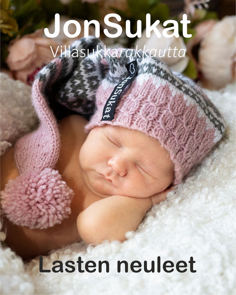 Uudesta Jonsukat-kirjasta löydät jonsukkamaisen ihania ja värikkäitä malleja pienoiskoossa, eli ohjeita lasten kokoisille päähineille, sukille ja vanttuille.