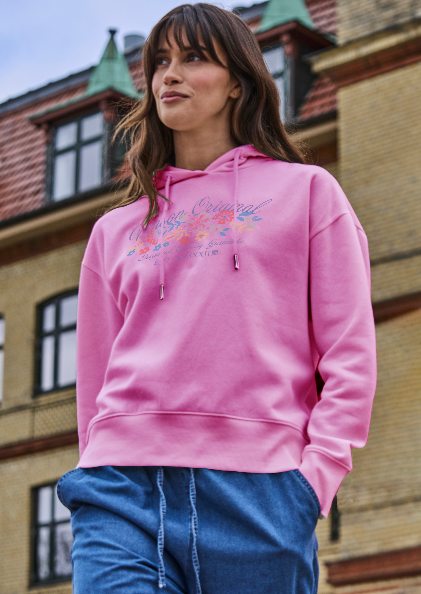 Vinson naisten huppari 80 puuvillaa 20% polyesteria. Sisäpuoli harjattu