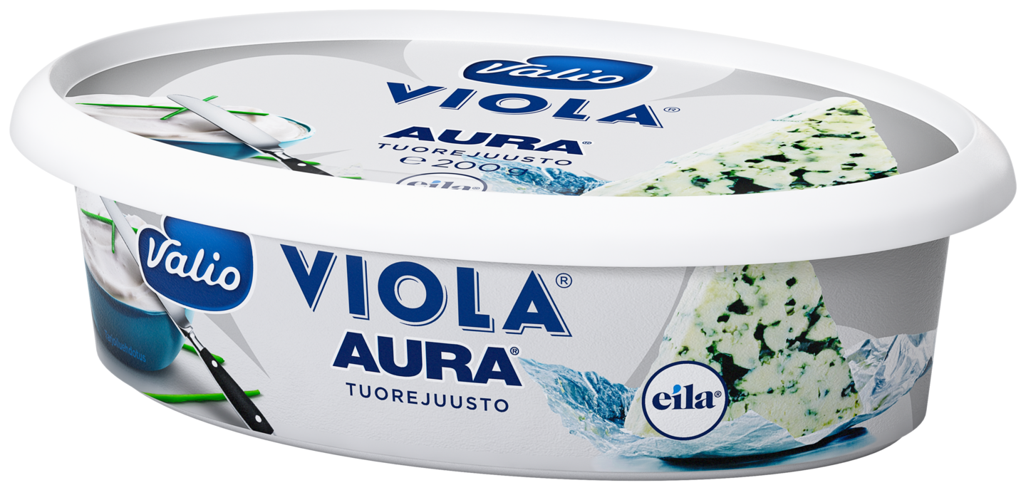 Valio Viola® AURA® tuorejuuston maku ja rakenne ovat miellyttävän pehmeät. Valio AURA® sinihomejuuston ainutlaatuista makua on ihanan kätevä sipaista leivälle, keksin päälle tai vaikka voileipäkakun täytteeksi! Muiden Valio Viola® tuorejuustojen tapaan se sopii mainiosti myös ruoanlaittoon. Valio Viola® tuoteperheestä löydät laajan valikoiman suolaisia ja makeita tuorejuustoja sekä myös useita kevyitä makuvariantteja. Kaikki Viola® tuorejuustot ovat laktoosittomia ja kevyttuorejuustot lisäksi Sydänmerkkituotteita.