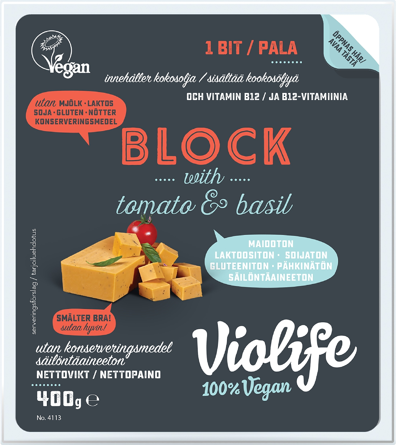 Violife 400g tomaatti ja basilika kasviperäinen juustovaihtoehto