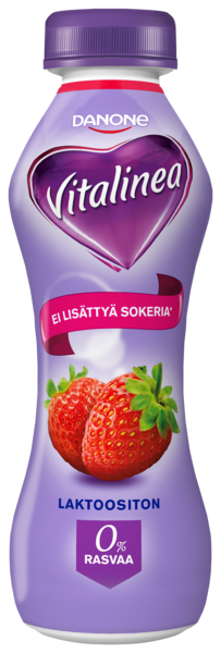 Vitalinea Mansikka juotava jogurtti on kätevä ja kevyt välipala, joka ihastuttaa maullaan. Vitalinea juotavat jogurtit ovat laktoosittomia ja rasvattomia. Niissä ole lisättyä sokeria vaan ne sisältävät makeutusaineita.