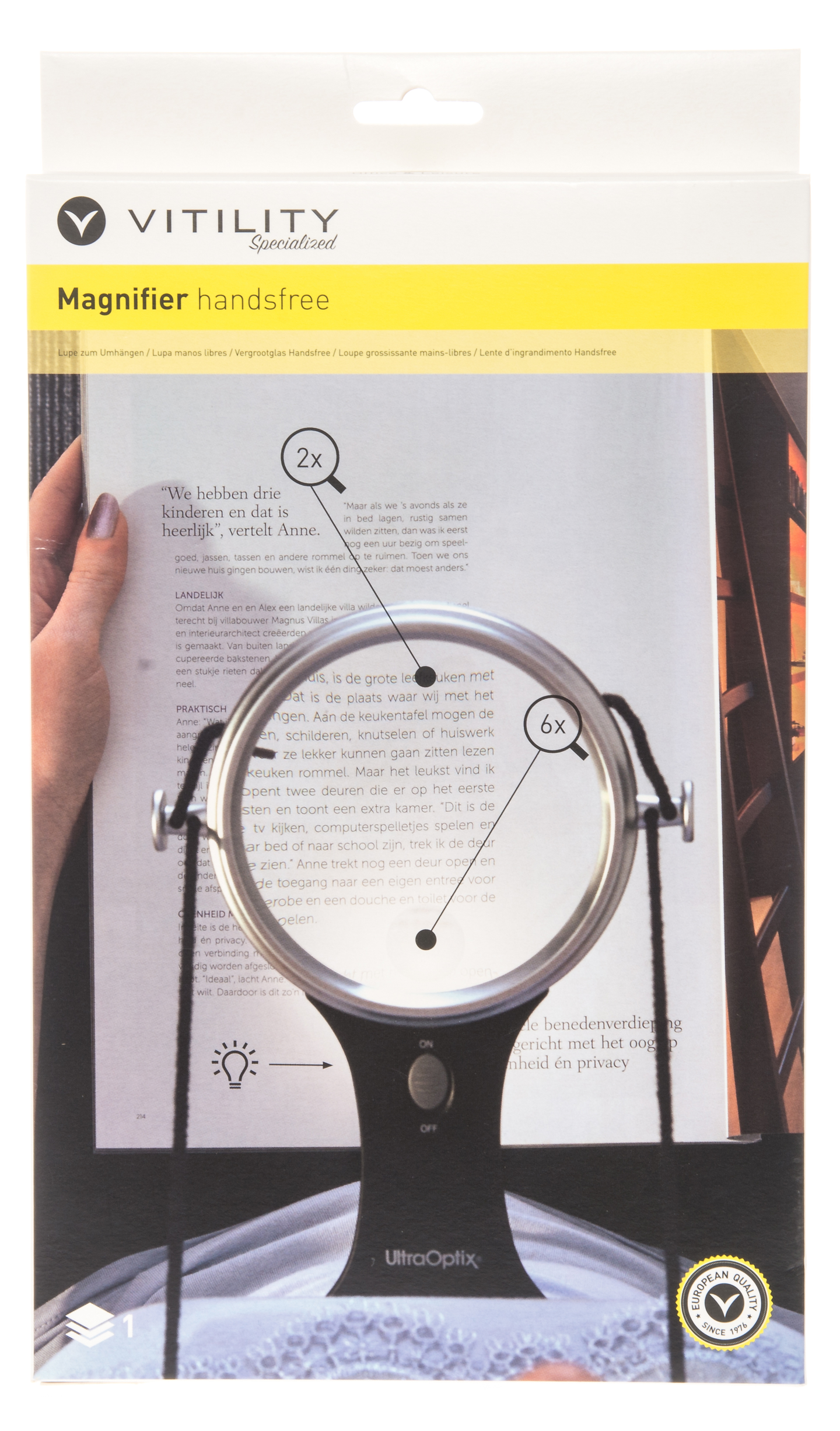 Suurennuslasi on erinomainen lukemiseen ja käsitöiden tekemiseen. Kaulanauhan ansiosta suurennuslasia voi käyttää sylissä kädet vapaana. Suurennuslasissa on myös valo näkyvyyttä parantamaan. Paristot eivät sisälly pakkaukseen. 1,5x ja 6x suurennus. Ø 10 cm.