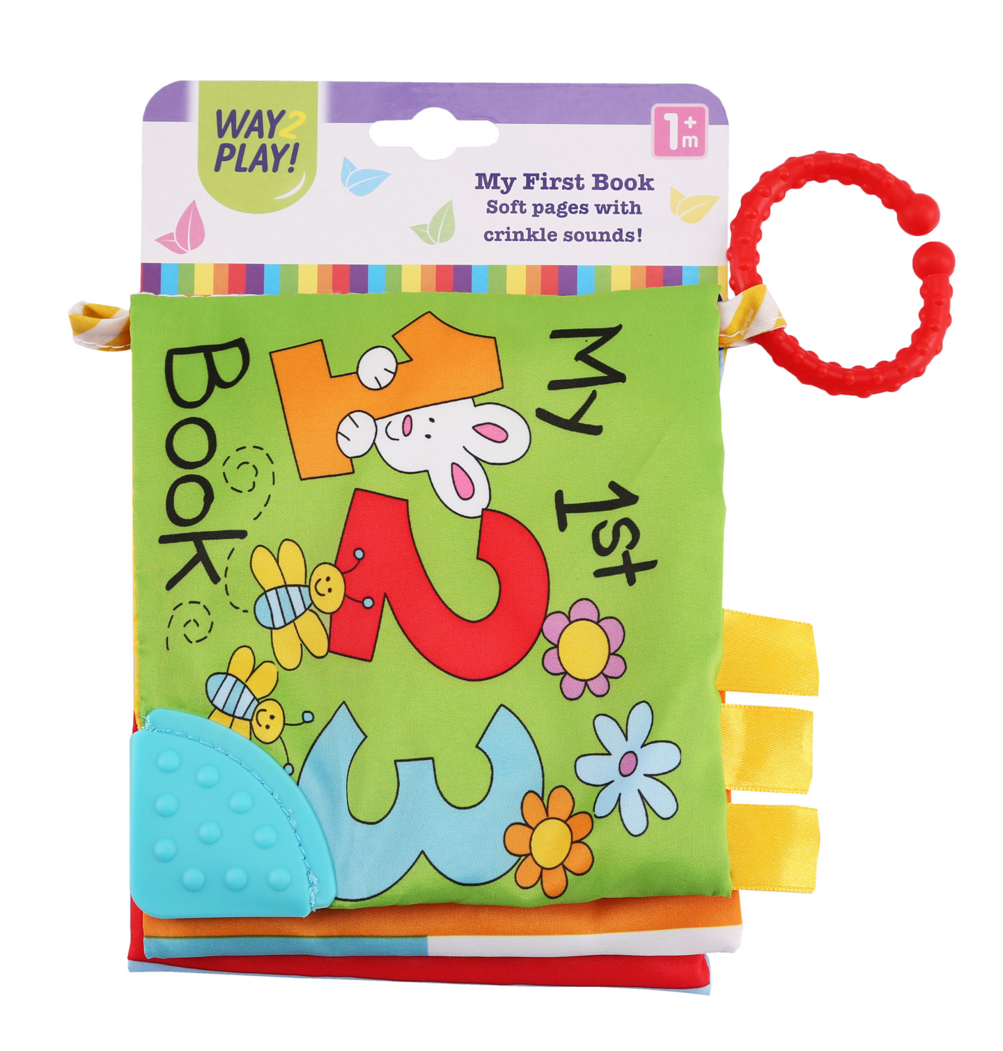Iloisen värikkäässä pehmokirjassa on hauskoja kuvia, joita vauva tutkii mielellään. Kirjassa on pehmeä kulma puruleluksi ja kätevä rengas, jolla sen saa kiinnitettyä esim. vaunuihin. Ikäsuositus yli 3 kk.
