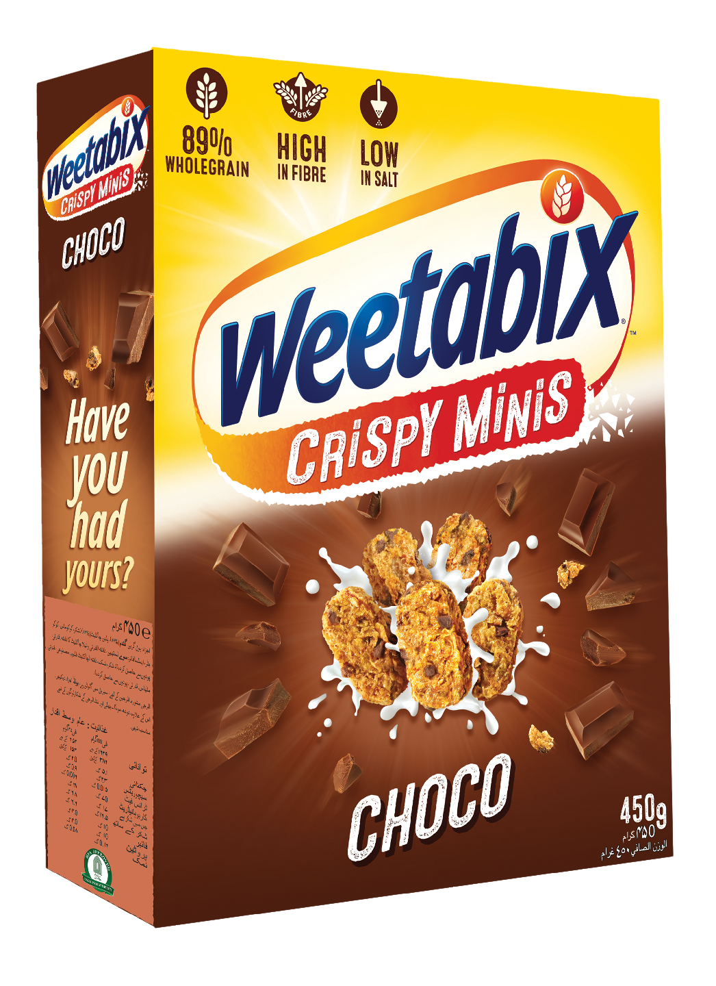 Weetabix Minis -murokkeet ovat pieniä ja erittäin maukkaita minimurokkeita. Ne ovat rapeita suupaloja, jotka sisältävät täysjyvää, runsaasti kuitua ja monia maukkaita ainesosia – niiden makuun ihastuu koko perhe. Minis-murokkeiden sisältämästä täysjyvävehnästä saa runsaasti hiilihydraatteja, jotka antavat energiaa.