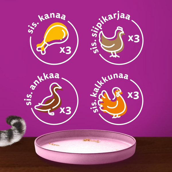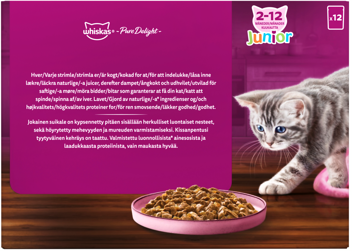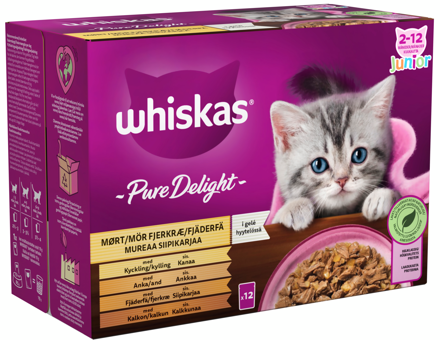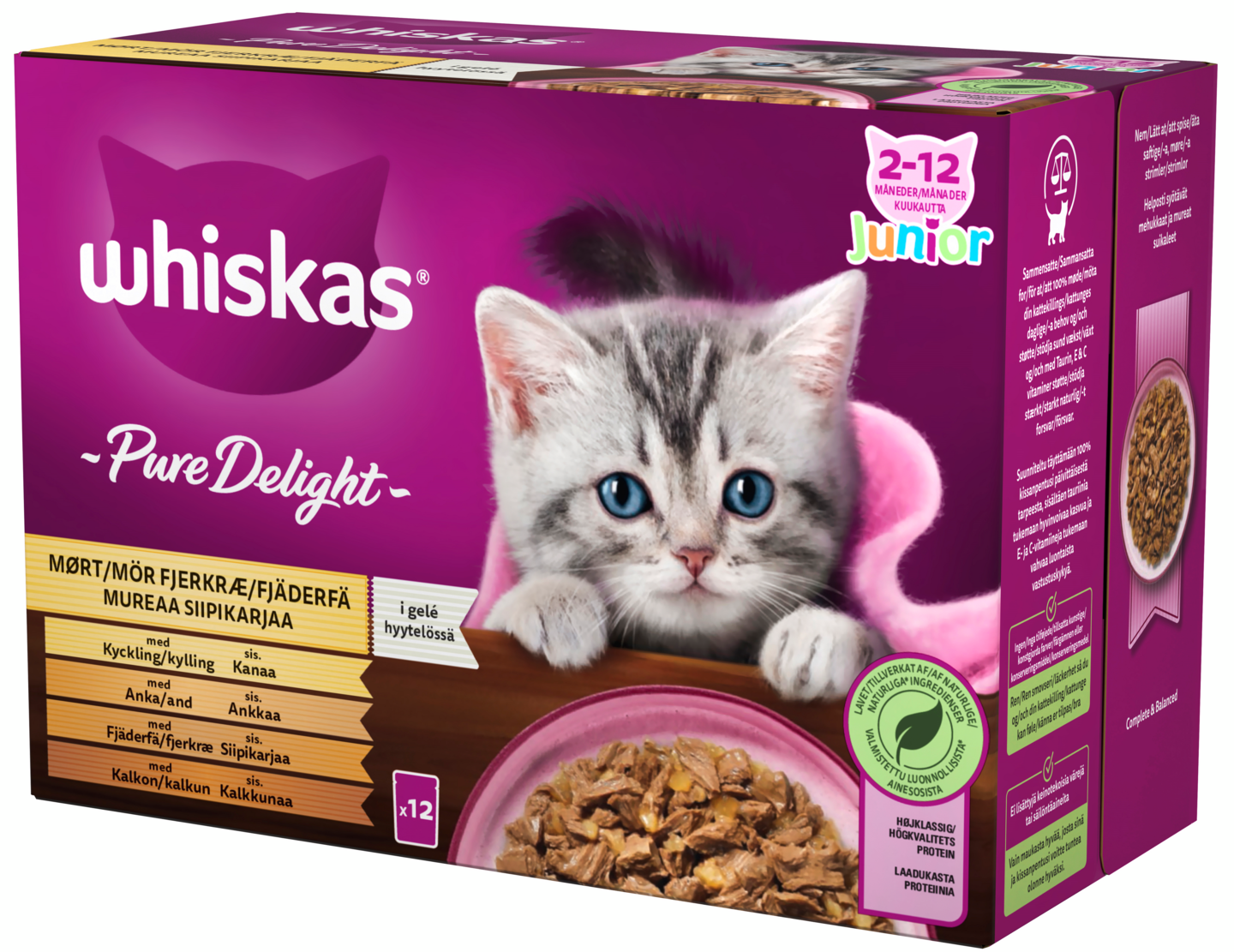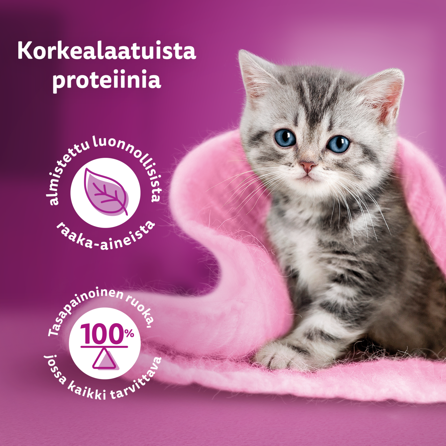 Whiskas® huolehtii kissasi hyvinvoinnista sen elämän jokaisessa vaiheessa tarjoten aterioita, joita kissasi rakastaa. Sisältää tasapainoisessa suhteessa vitamiineja ja kivennäisaineita, jotta kissasi pysyisi hyvässä kunnossa ja tyytyväisenä