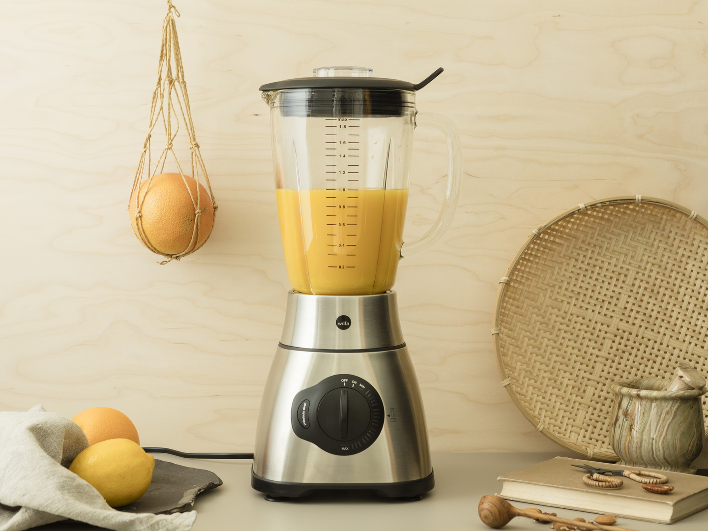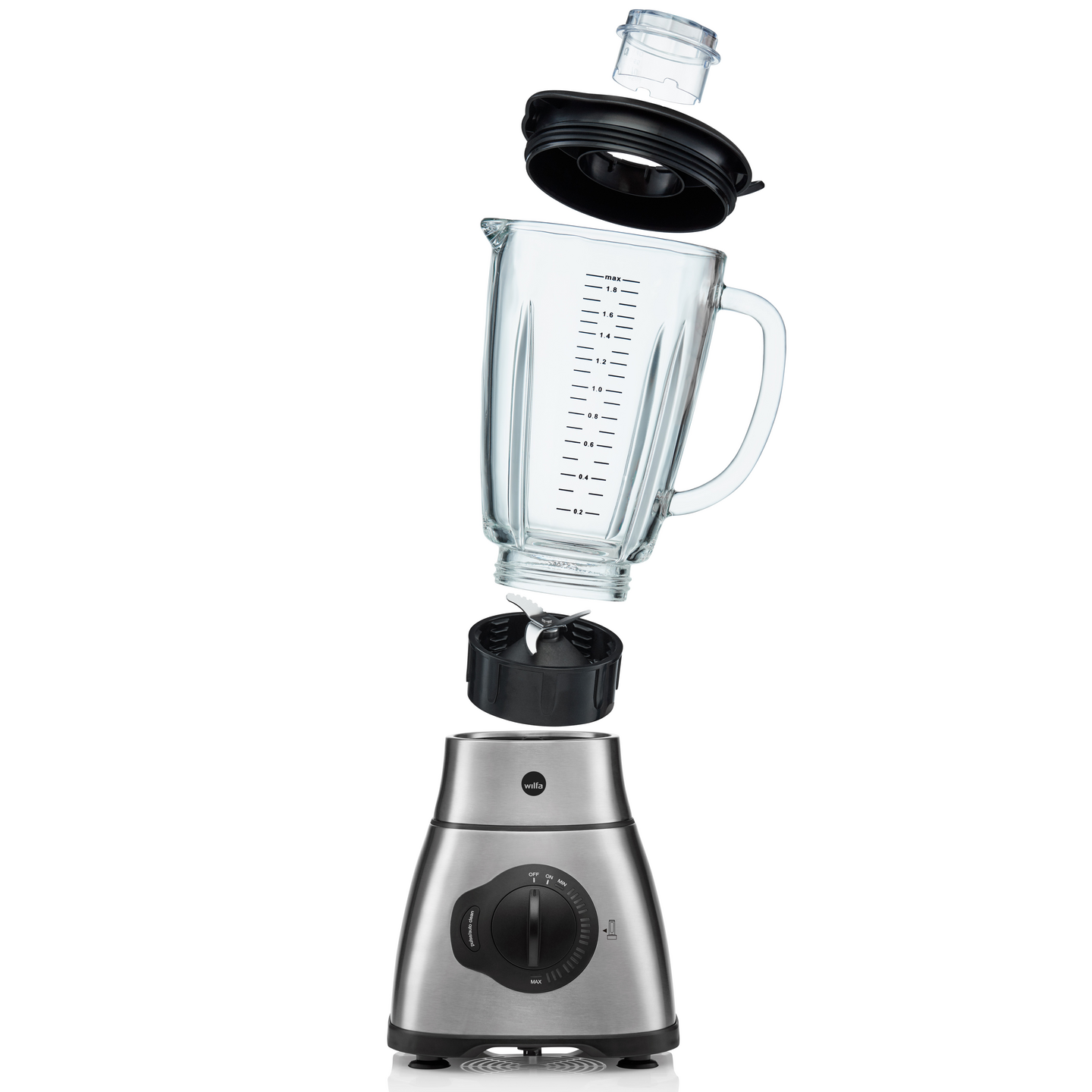 Kestävästä lasista valmistetun kannun tilavuus on 1,8 litraa. Kannen täyttöaukosta on helppo lisätä aineksia tai nesteitä laitteen ollessa käynnissä. Tähän tehosekoittimeen soveltuu myös 2GO-pullo, joka myydään erikseen! Laadukas teräyksikkö murskaa myös jäätä helposti. Terä on irrotettavissa lasikannusta perusteellista puhdistusta varten. Voimakas 1500 watin moottorin teho murskaa ja sekoittaa vaivatta myös haastavia aineksia.