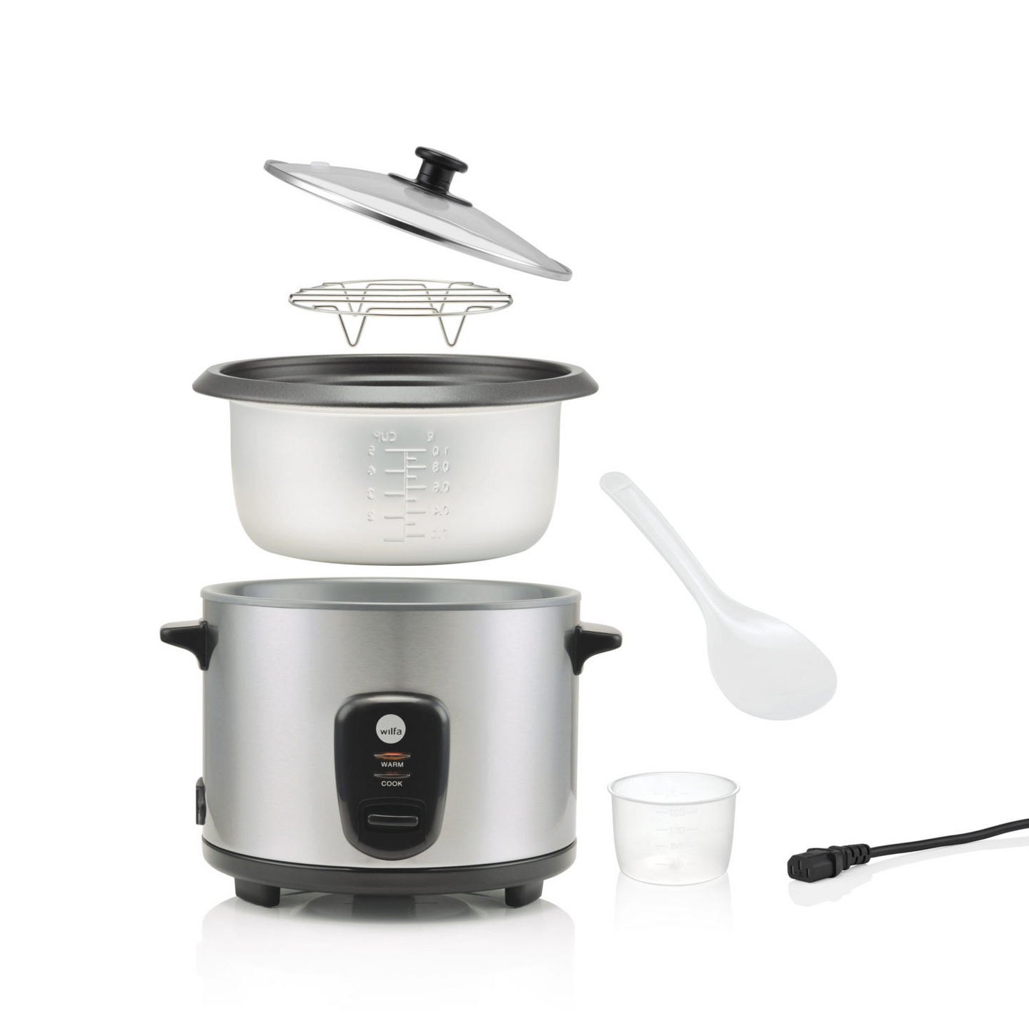 Wilfa Inari riisinkeittimellä saat täydellistä riisiä joka kerta! Inari valmistaa kerrallaan 1 litran riisiä automaattisesti ja pitää sen lämpimänä ruokailuun saakka. Voit valmistaa myös puuroa tai höyryttää vihanneksia mukana toimitettavalla höyryritilällä. Irrotettavan virtajohdon ansiosta voit laittaa riisinkeittimen suoraan tarjoilupöydälle. Kulho on irrotettava ja siinä on tarttumaton pinnoite, joten puhdistus on helppoa. Höyryritilän lisäksi laitteen mukana toimitetaan mittakuppi sekä riisilusikka.