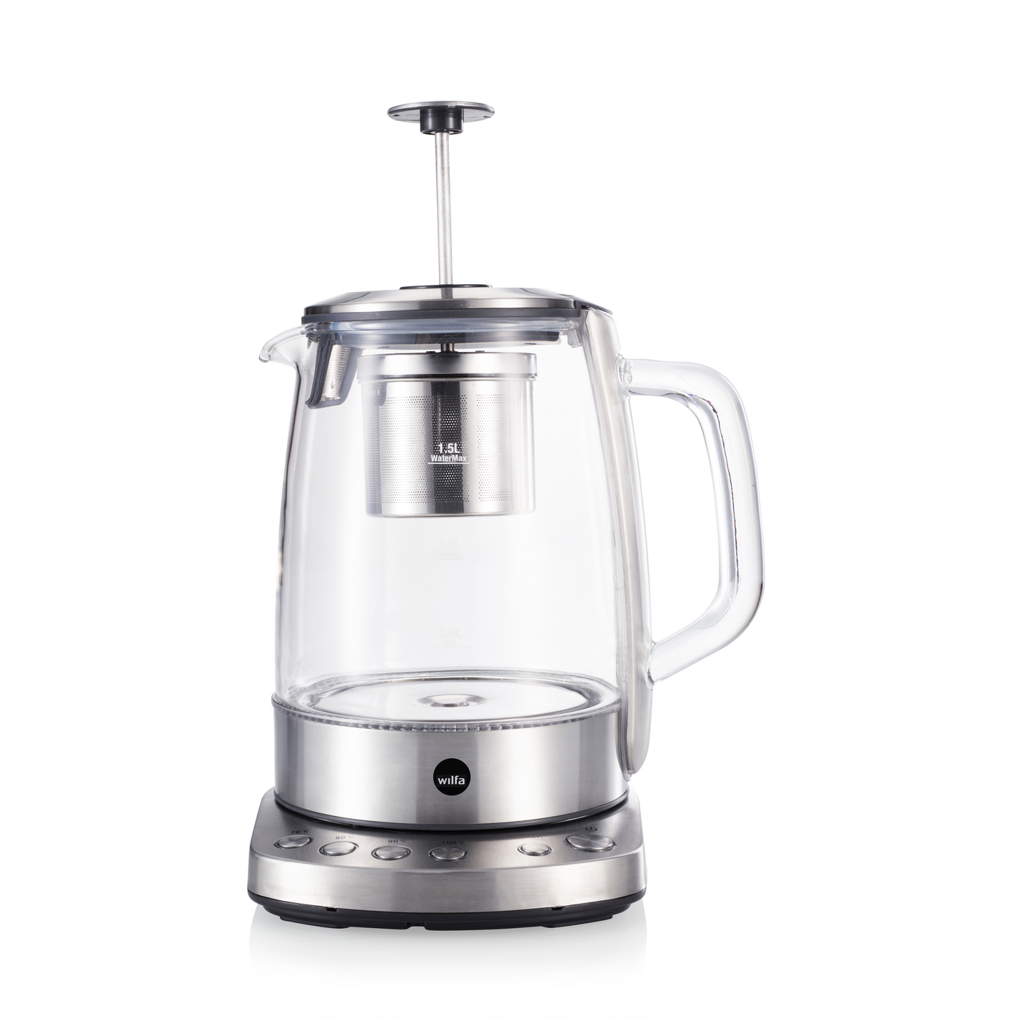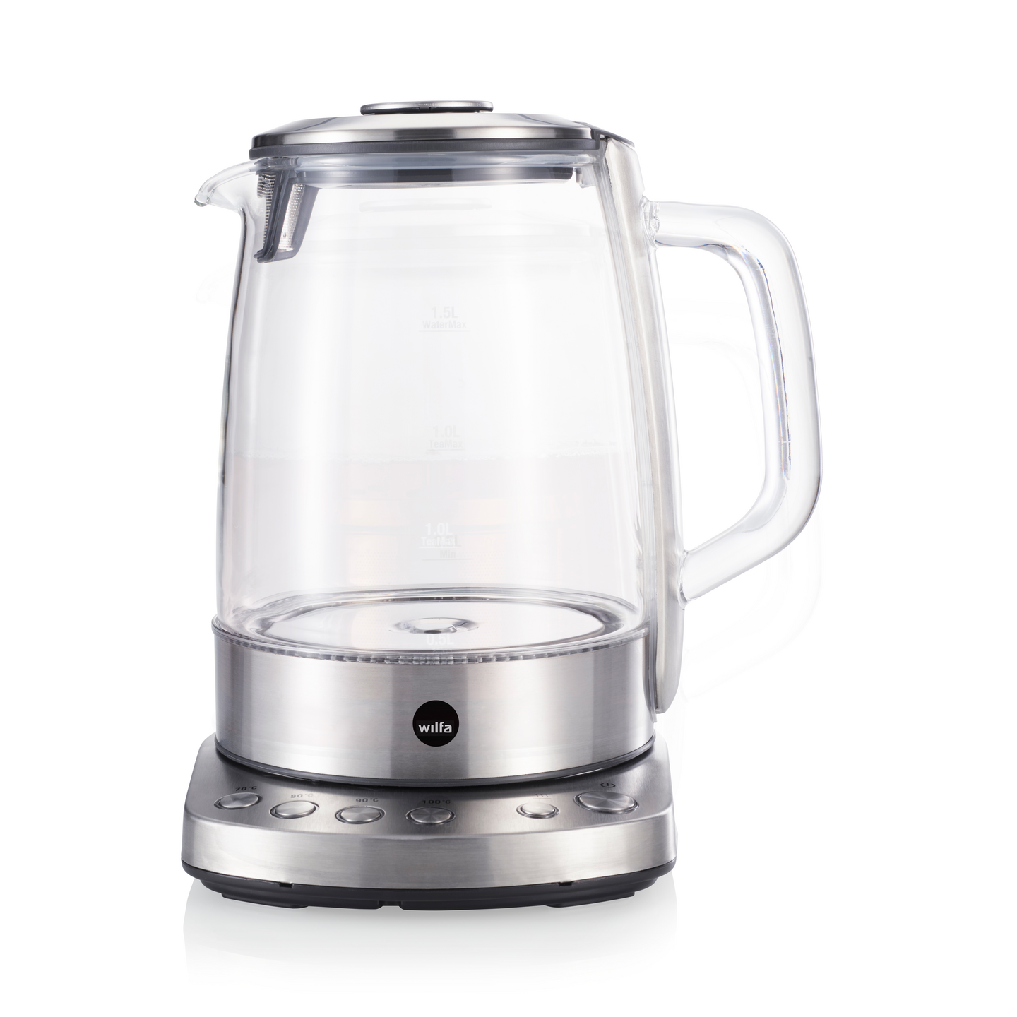 Täydellistä teetä Wilfa teenkeittimellä. Lasikannullisessa keittimessä on 1,25 litran kapasiteetti ja lämpimänäpitotoiminto. kaksi kantta – teesihti teen valmistamiseen ja kansi veden keittämiseen. Täydellinen keitin teen ystävälle!