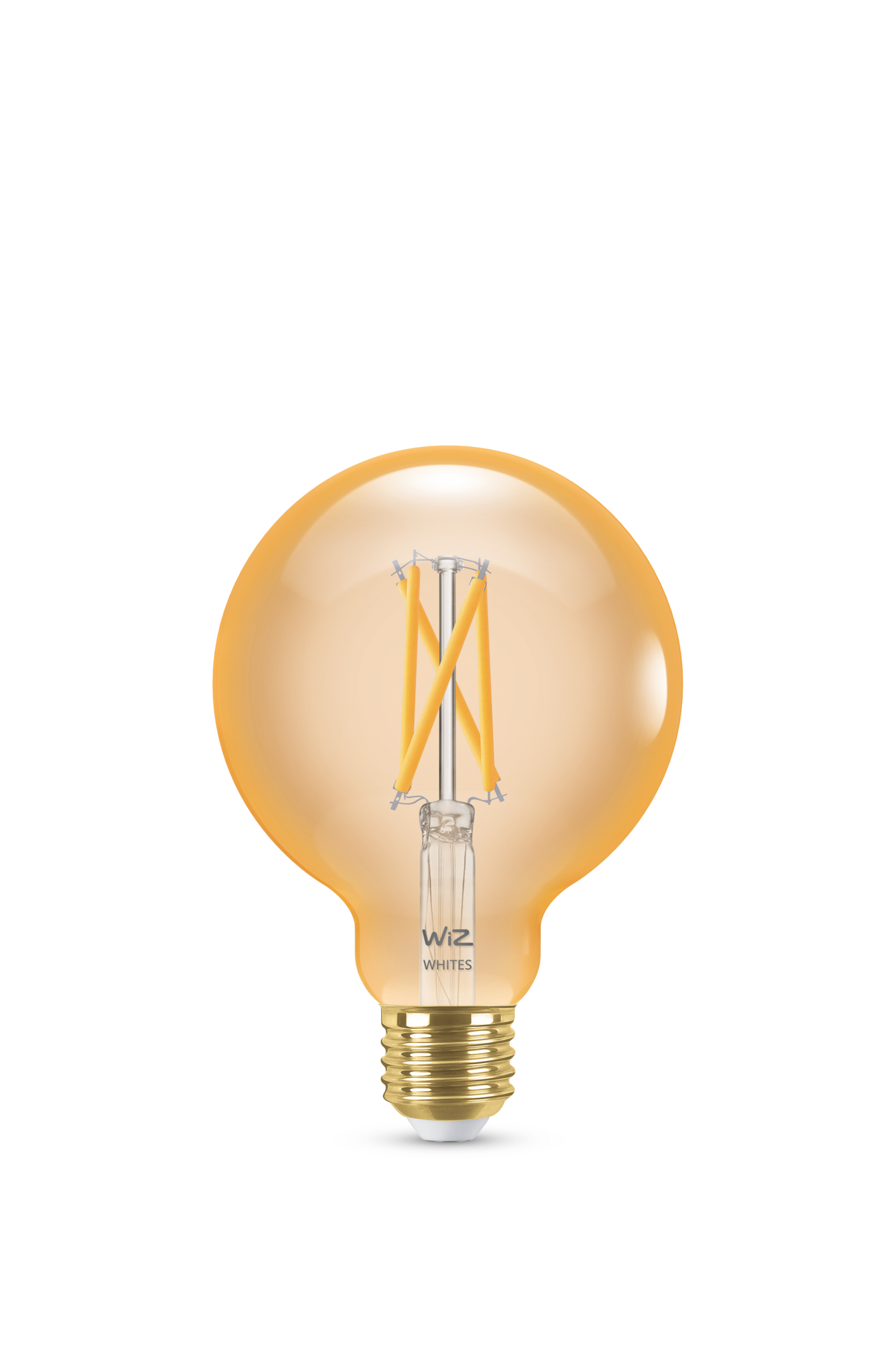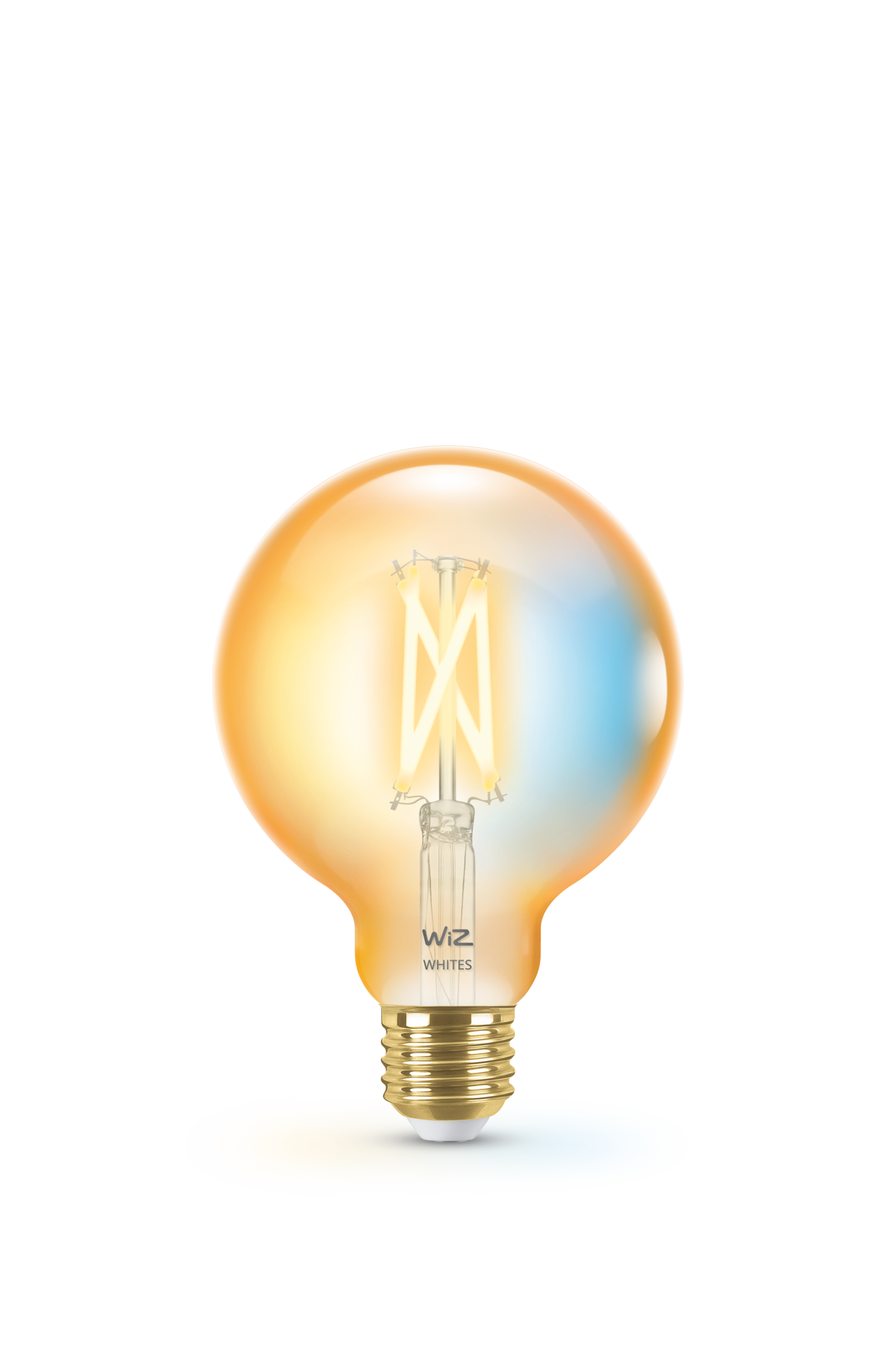 WiZin valkoisen valon eri sävyjä toistava tunable white filamenttilampuissa yhdistyvät klassinen vintage-tyyli ja moderni teknologia. G95-pallolamppu tekee kodistasi tyylikkään hienostuneella meripihkan hehkulla, ja lamppua voidaan käyttää valaisimena jo itsessään.