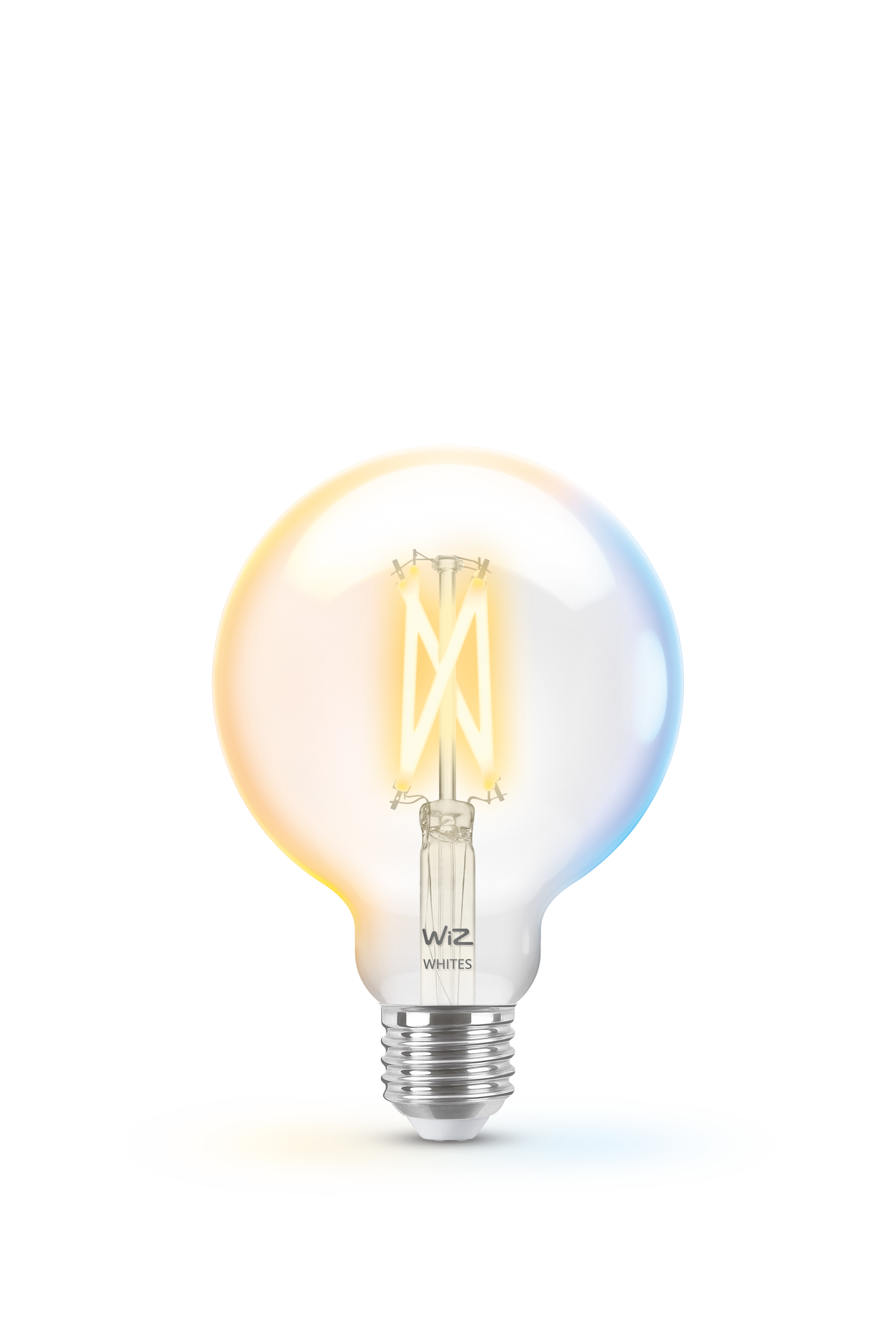 WiZin valkoisen valon eri sävyjä toistava tunable white filamenttilampuissa yhdistyvät klassinen vintage-tyyli ja moderni teknologia. G95-pallolamppu valaisee kotisi hienostuneella hehkulla, ja sitä voidaan käyttää valaisimena jo itsessään. Älykkään LED-pallolampun kirkkaan lasipinnan läpi hohkaa koristeellinen hehkulanka.