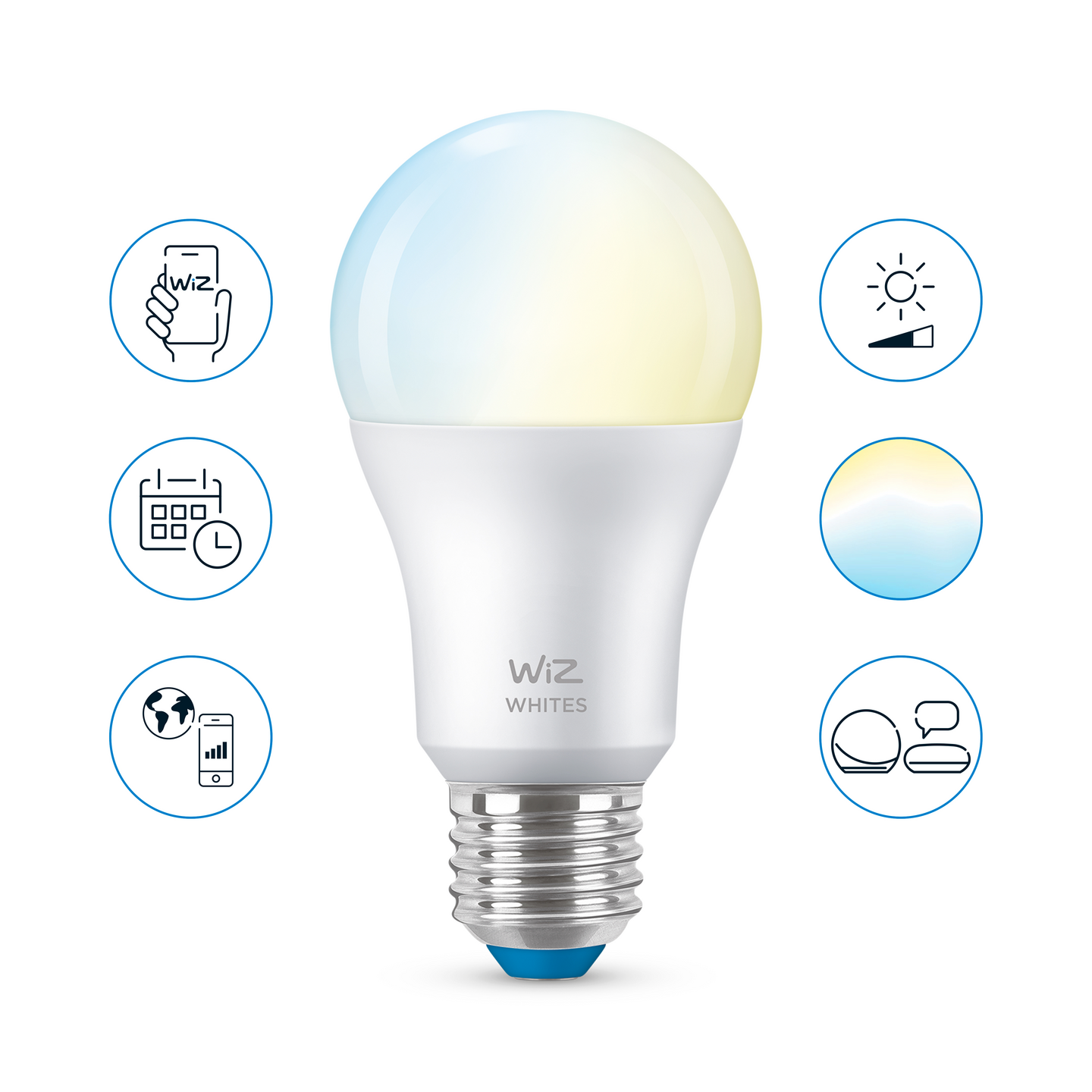 Kaikki hetket eivät ole samanlaisia, kuten eivät myöskään kaikki älylamput. Vaikka WiZ-lamppu on muodoltaan tavallinen A60-lamppu, se on ominaisuuksiltaan ainutlaatuinen: sen valkoista LED-valoa voi säätää erilaisten tarpeiden ja mielialojen mukaan. Ajasta valo viileäksi keskittymistä varten ja kotoisaksi rentoutumista varten. Säädä valo juuri sellaiseksi, että se luo kotiisi haluamasi tunnelman. Voit ohjata valoa Wi-Fi-yhteydellä ja WiZ-sovelluksella, WiZ-kytkimellä tai äänelläsi.