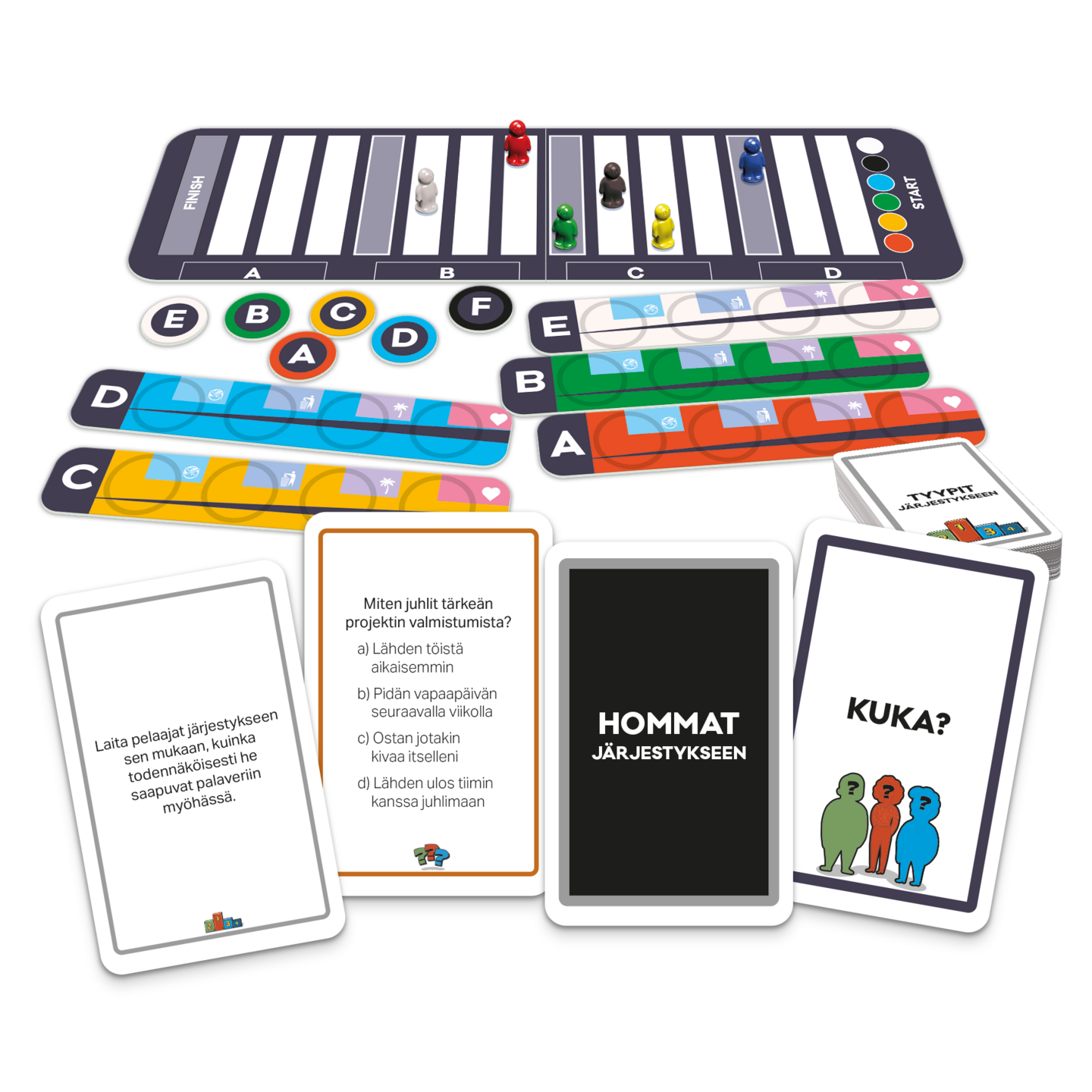 Täydellinen peli arjen sankareille! Jaa parhaimpia ja huonoimpia kokemuksia työelämäsi varrelta, kerro tarinoita, laita muita pelaajia järjestykseen ja yritä arvata, mitä muut kulloinkin ajattelevat. Kuka pääsee maaliin ensimmäisenä? Pelissä on liuta riemukkaita tehtäviä työn sankareille! Valmistettu Suomessa. Ikäsuositus: 15+ v. Pelaajien määrä: 3-6. Pelin kesto: 30+ min.