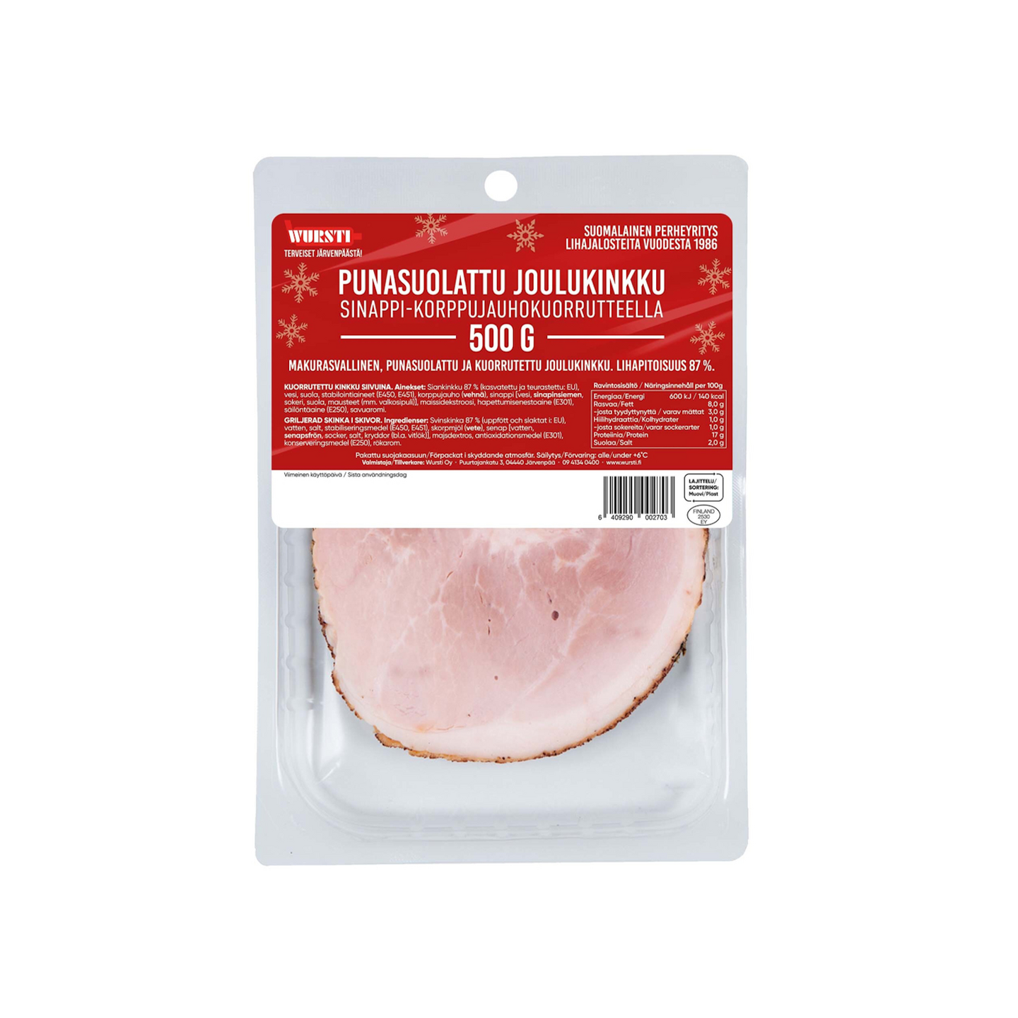 Siivutettu joulukinkku sinappi-korppujauhokuorrutteella.