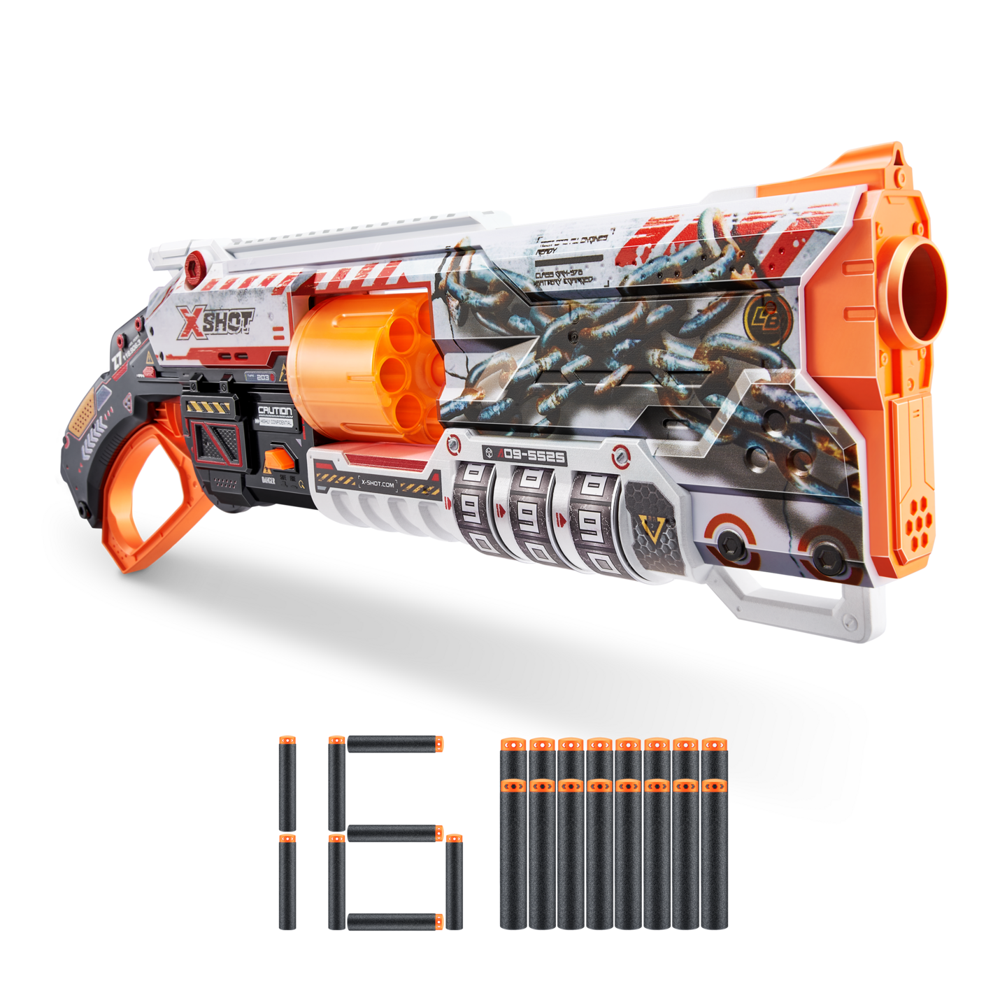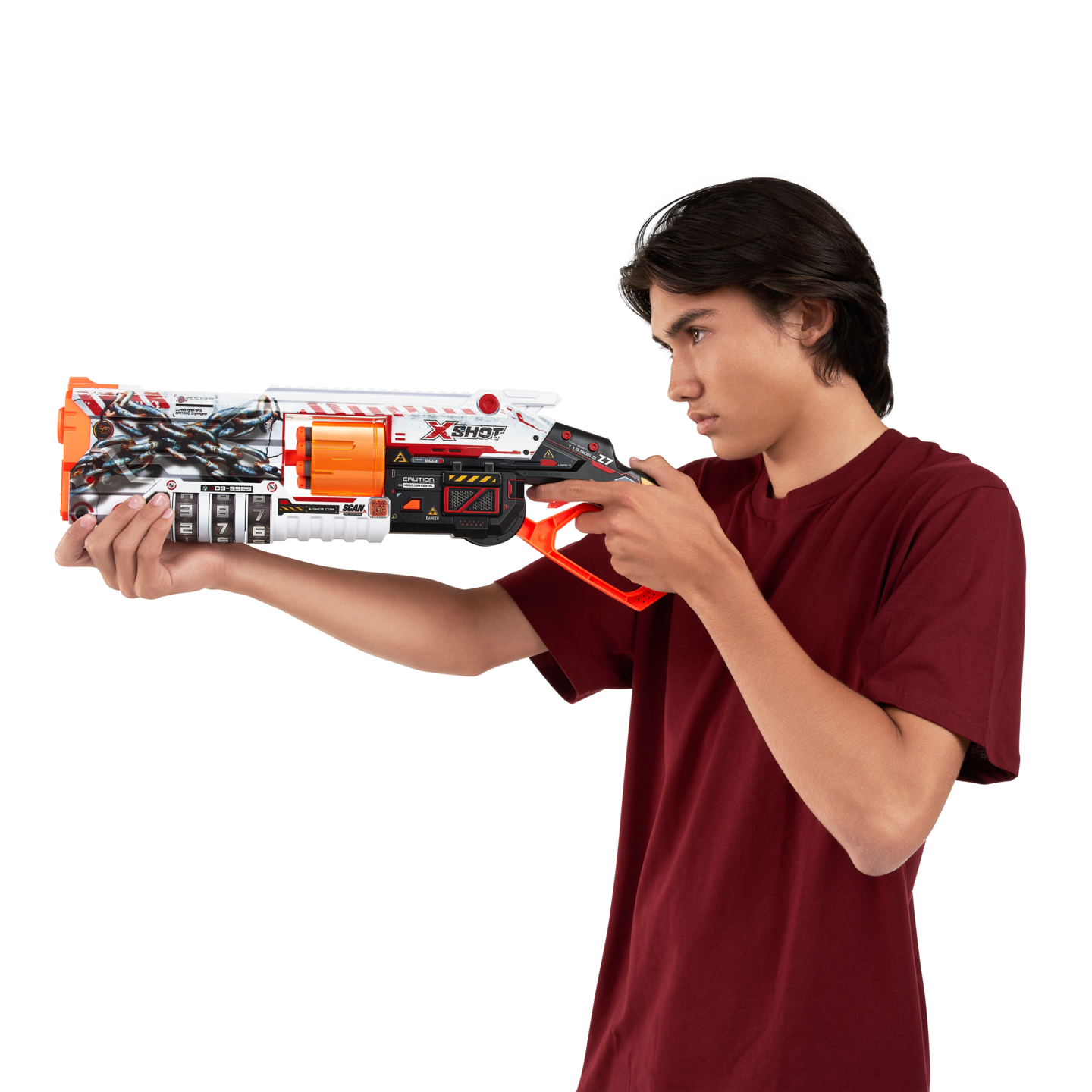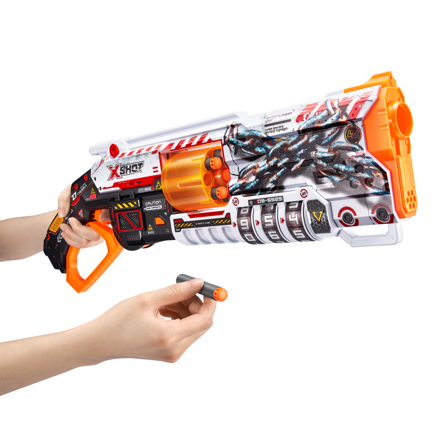 Jokaisen XSHOT Skins Lock Blasterin mukana toimitetaan QR-koodi, jonka avulla löydät ainutlaatuisen lukkoyhdistelmäsi. Avaa ase ja aloita hauskanpito! Kun taistelut ovat ohi, lukitse aseesi, niin kukaan muu ei voi käyttää sitä. Valitse poikkeavasti, valitse XSHOT Skins.