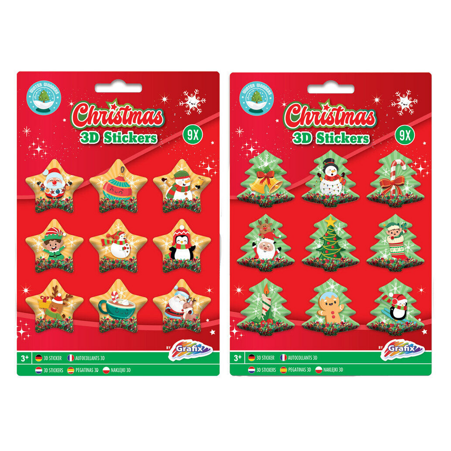 Jouluaiheiset 3D tarrat, 9kpl. Saatavilla 2 eri vaihtoehtoa.