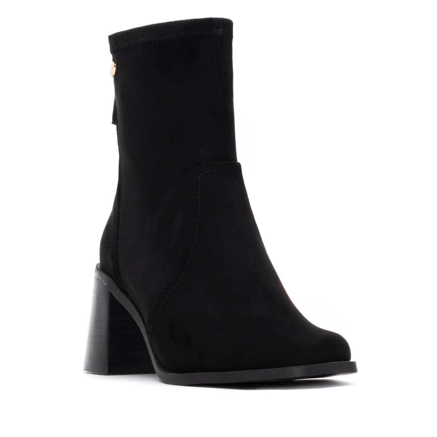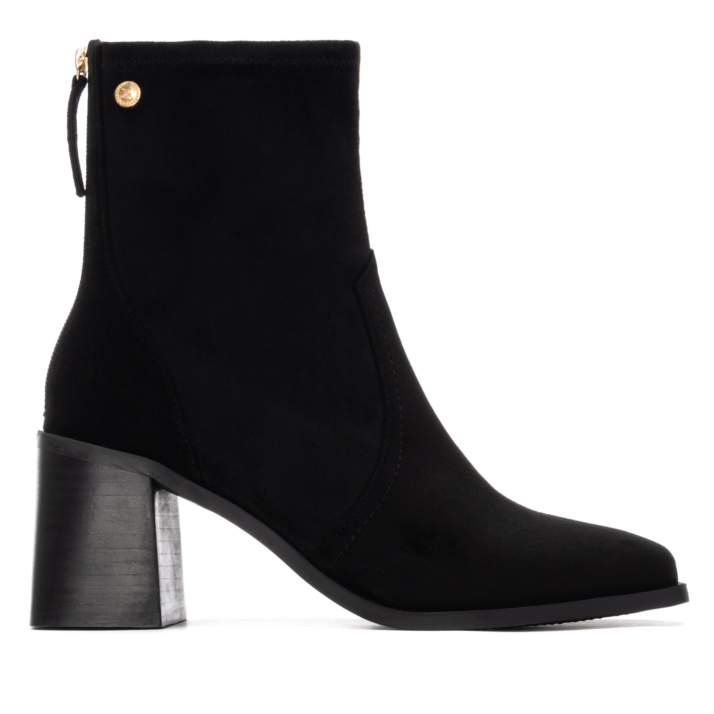 Elegantti Xti-nilkkuri, jossa takavetoketju helppoon pukemiseen. 7 cm neliökorko tuo mukavuutta ja modernia ilmettä. Pitävä ulkopohja ja virtaviivainen design tekevät tästä monikäyttöisen kengän kaikkiin tilaisuuksiin.