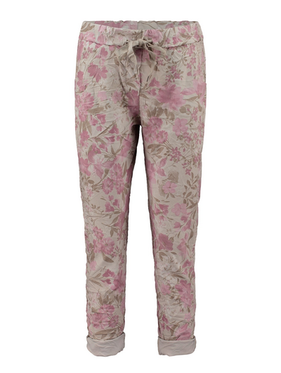 Rento ,mukava verkkarimainen kesähousu jossa kuminauha vyötärö ja taskut sivuilla. Joustava materiaali ja upea kukkakuosi. Lahkeet voi kääriä niin että housusta tulee caprit