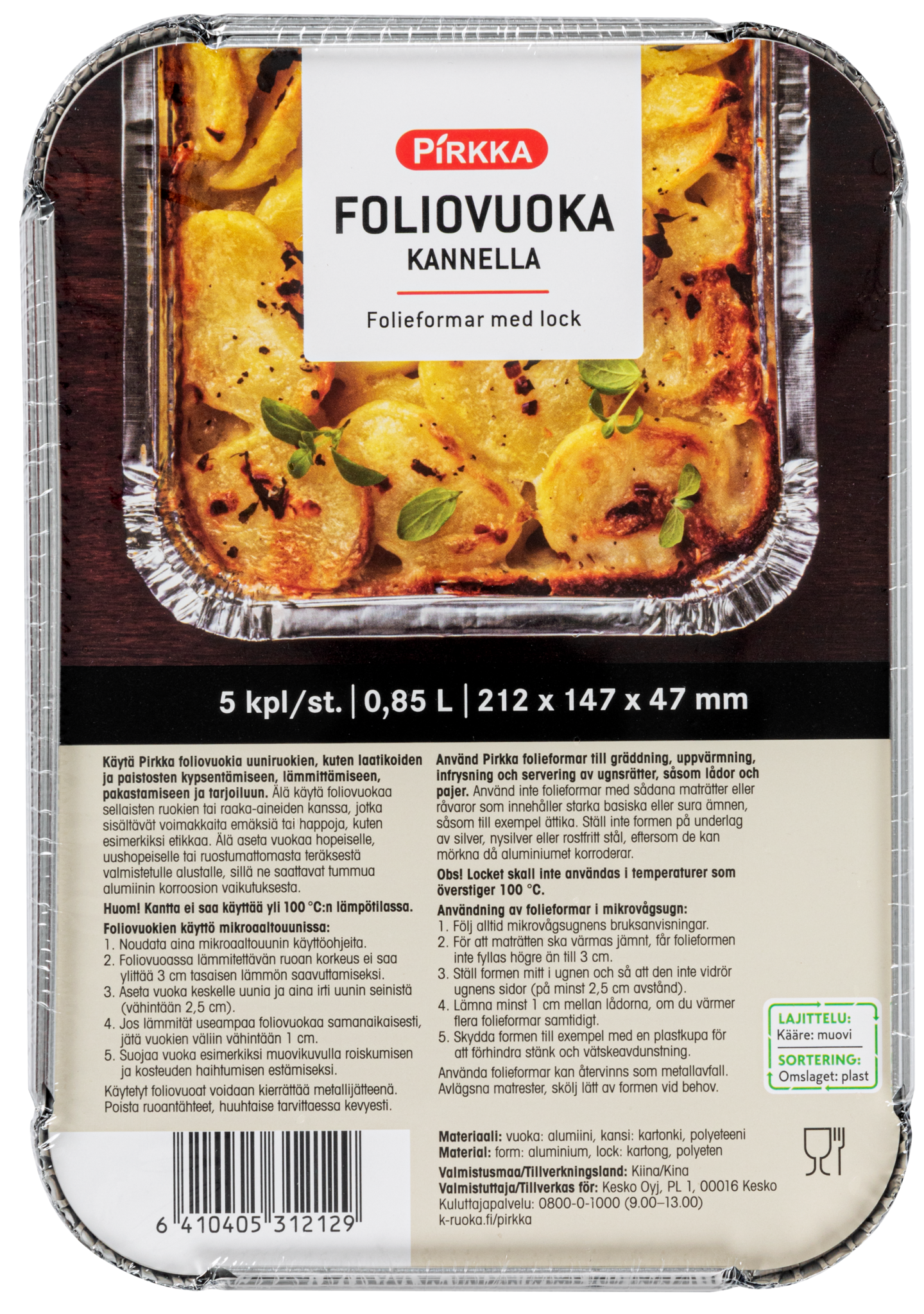 Pirkka foliovuoka kannella 0,85l 5kpl