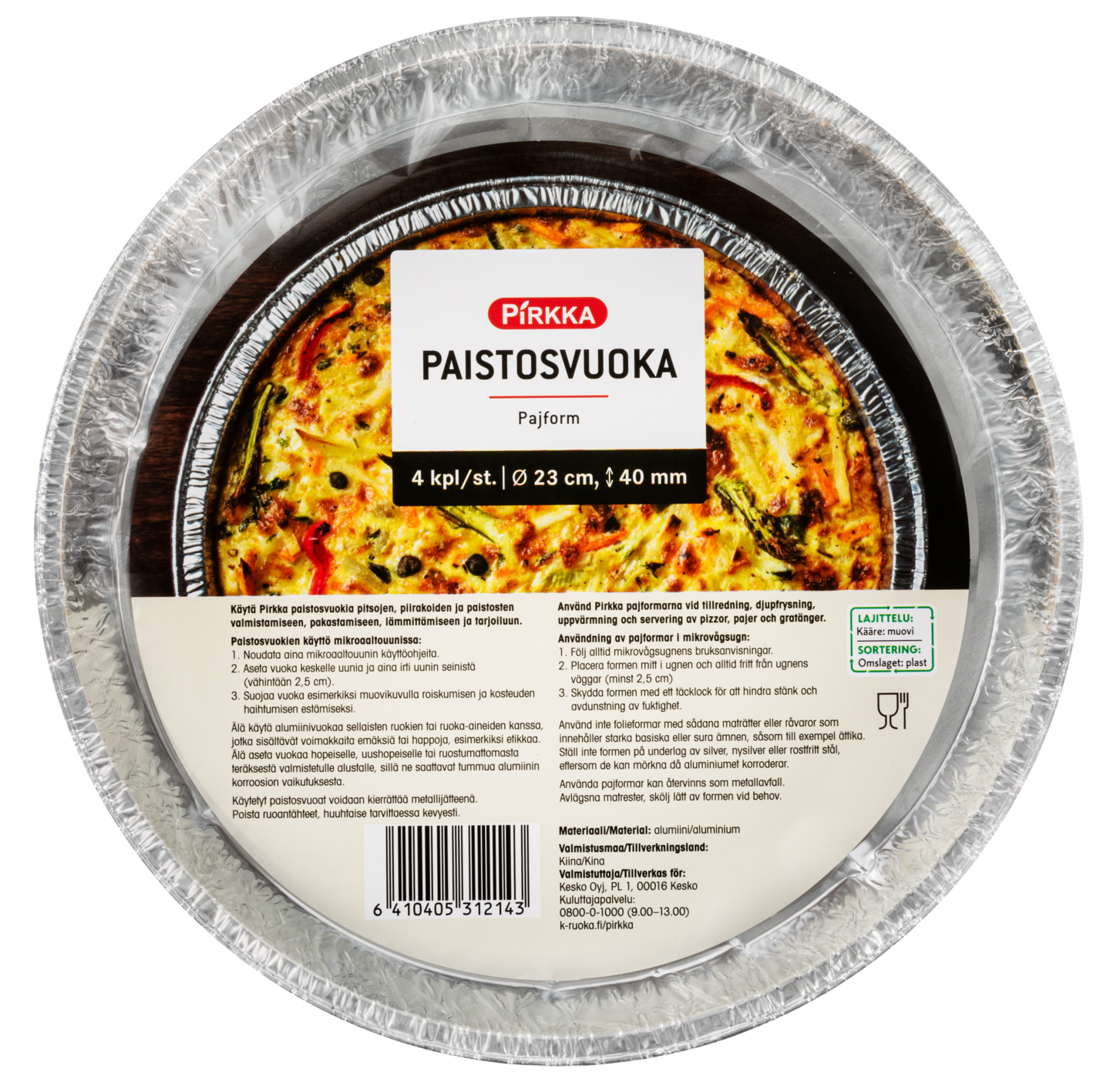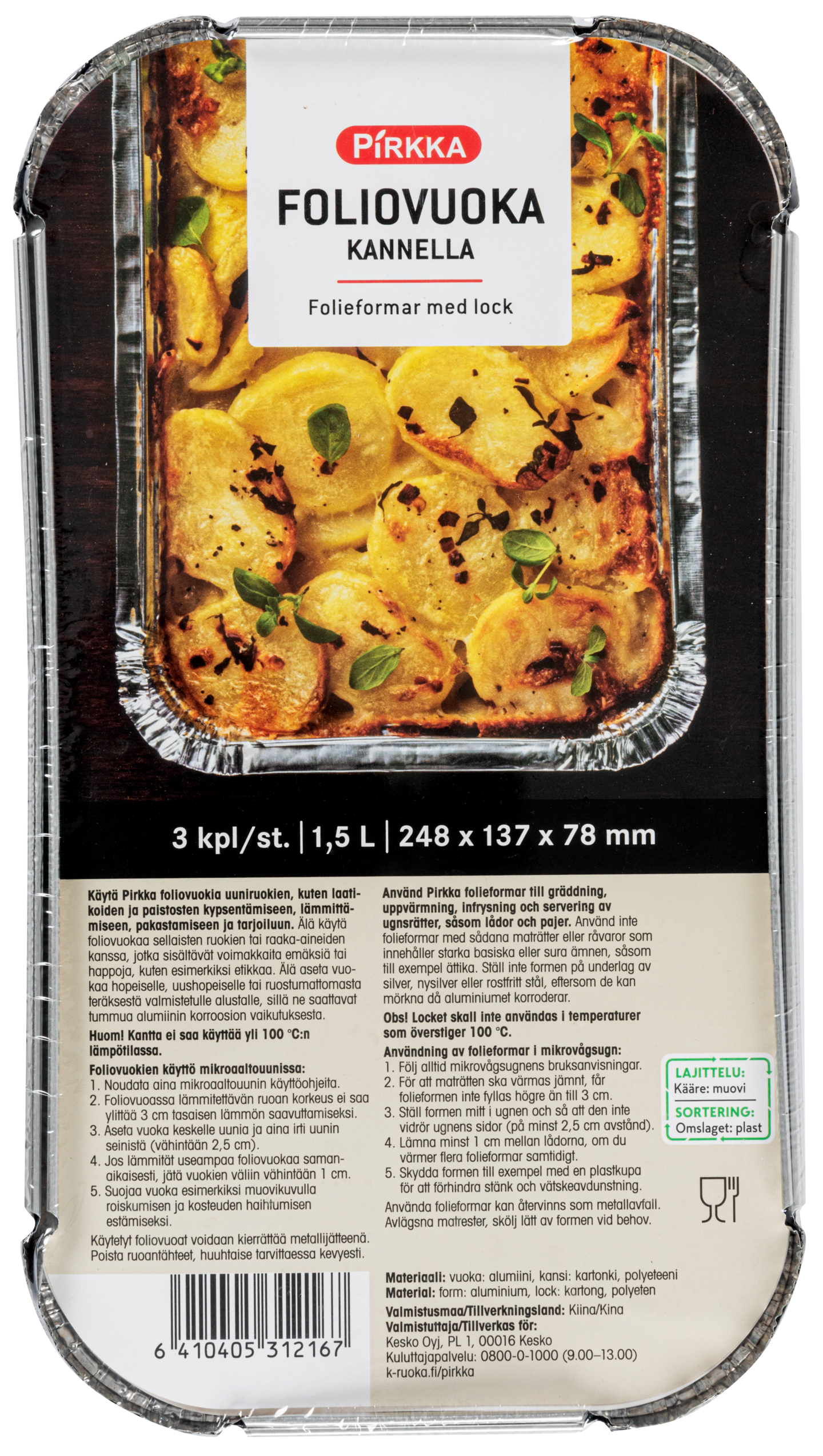 Pirkka foliovuoka kannella 0,4l 7kpl