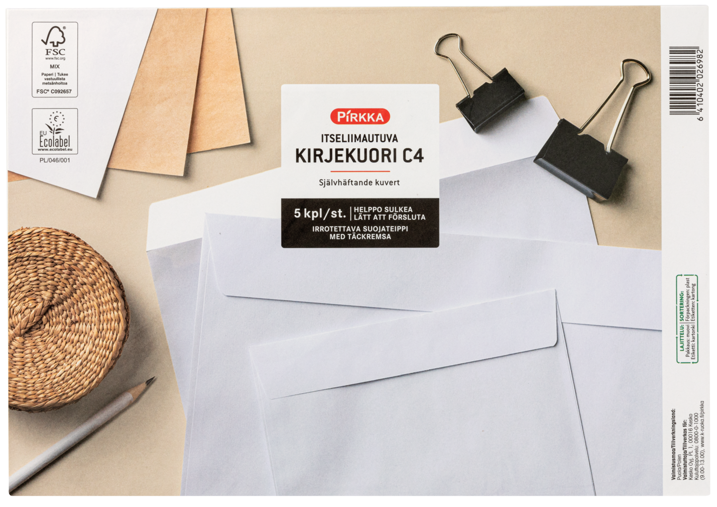 Pirkka itseliimautuva kirjekuori C4 5kpl