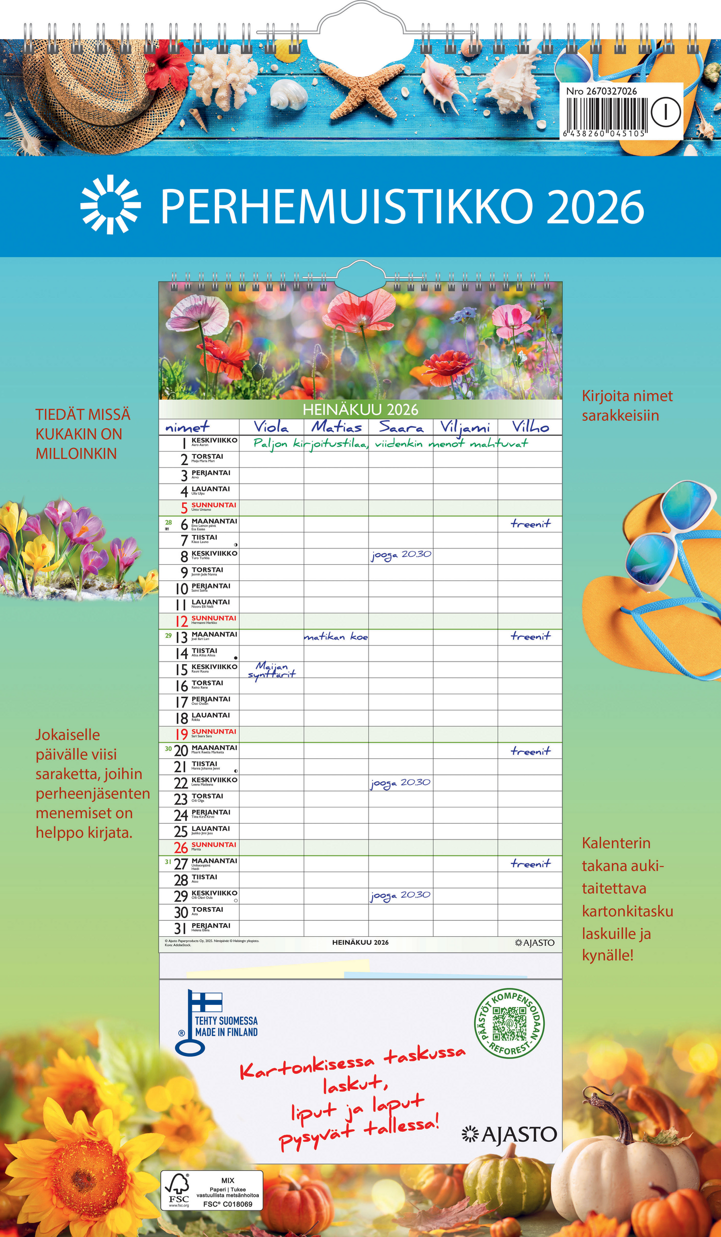 Ajasto seinäkalenteri perhemuistikko