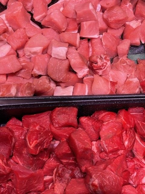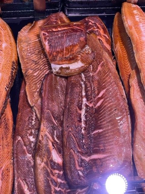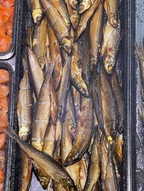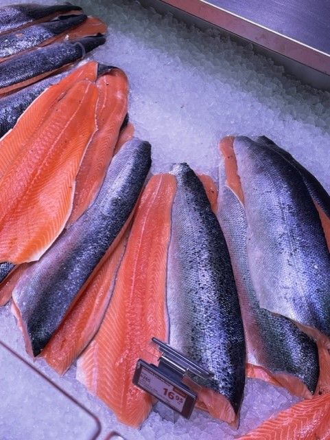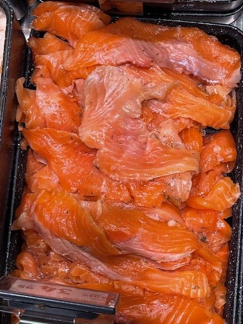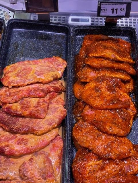 Valikoimassa palvelutiskimme kalat ja lihat.