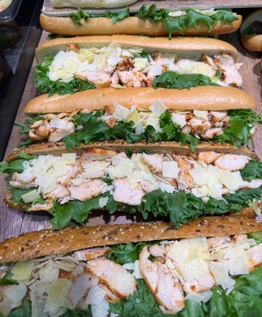 Täältä löydät suuressa suosiossa olevat kotikeittiömme valmistamat salaattiannokset, täytetyt patongit ja artesaani pizzapalat.