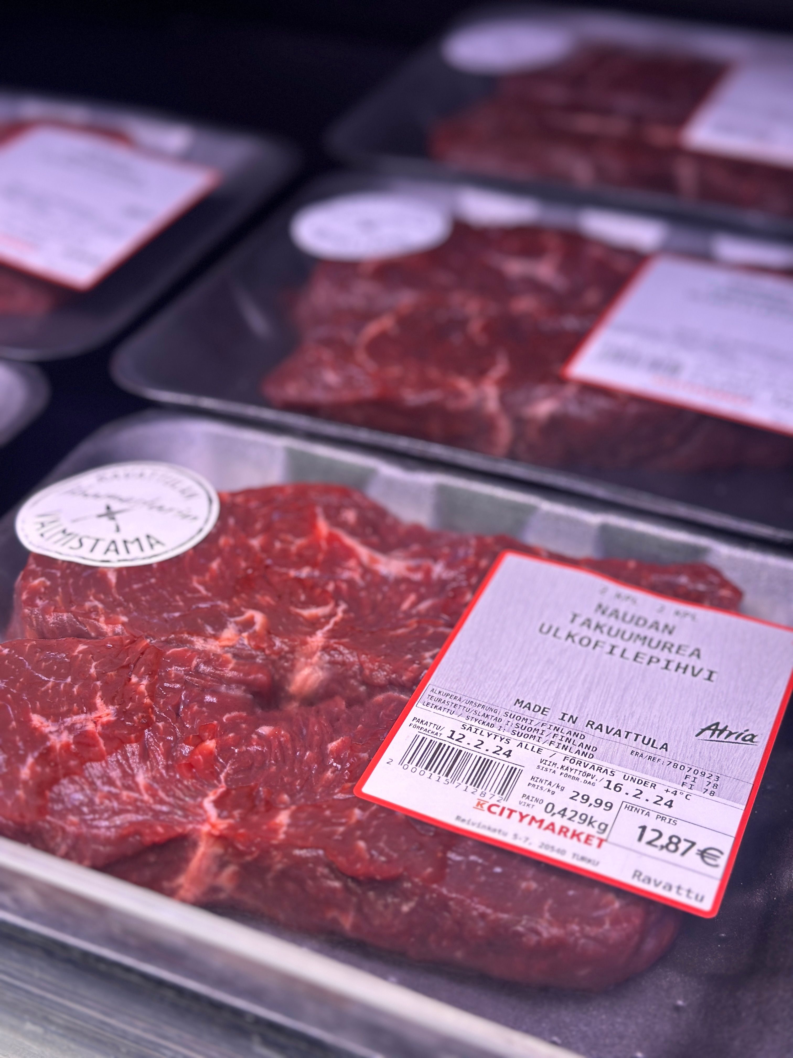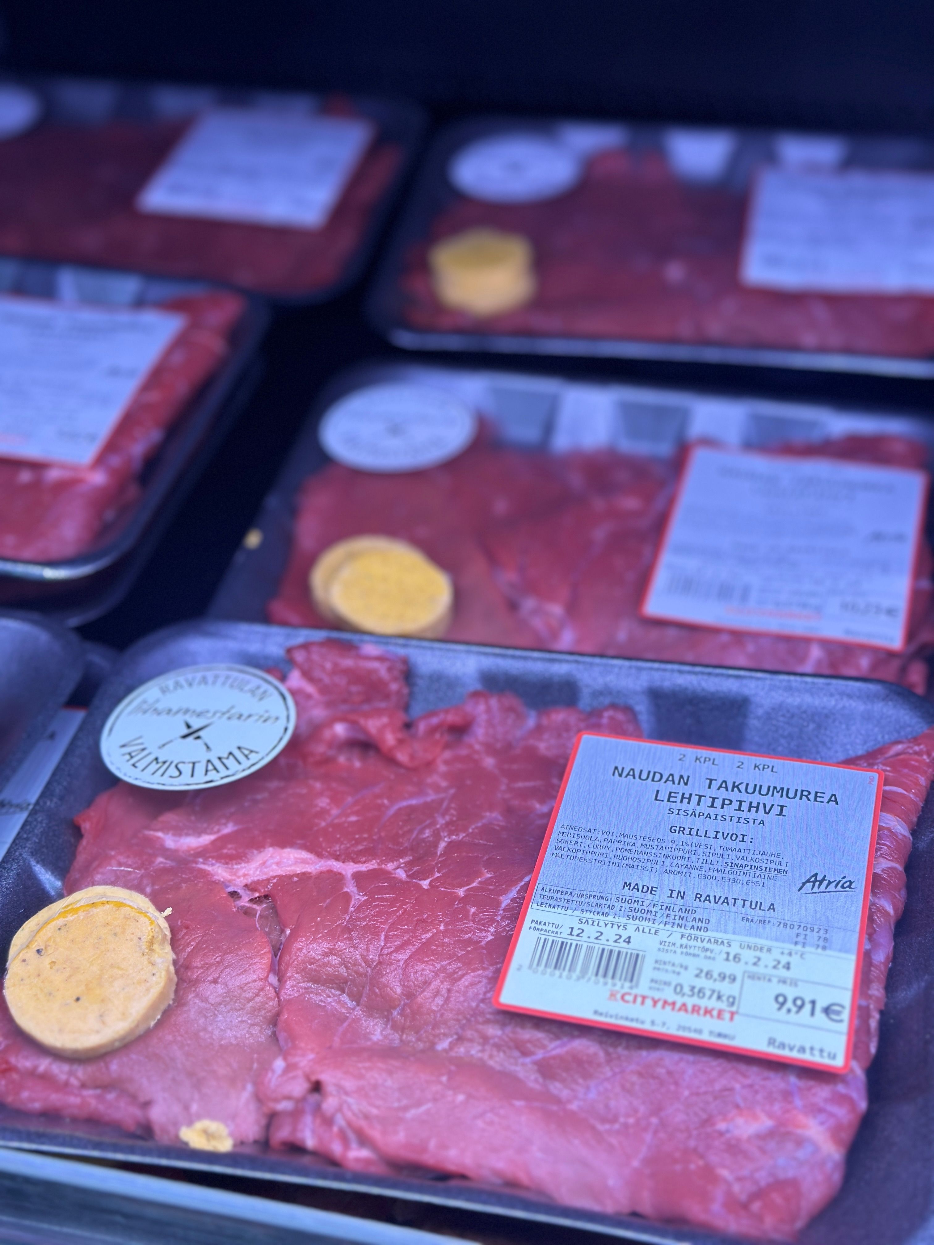 Suuri valikoima lihamestarin valmistamia naudan-, sian- ja broilerinlihaa eri tarkoituksiin kaupan omasta lihatiskistä.