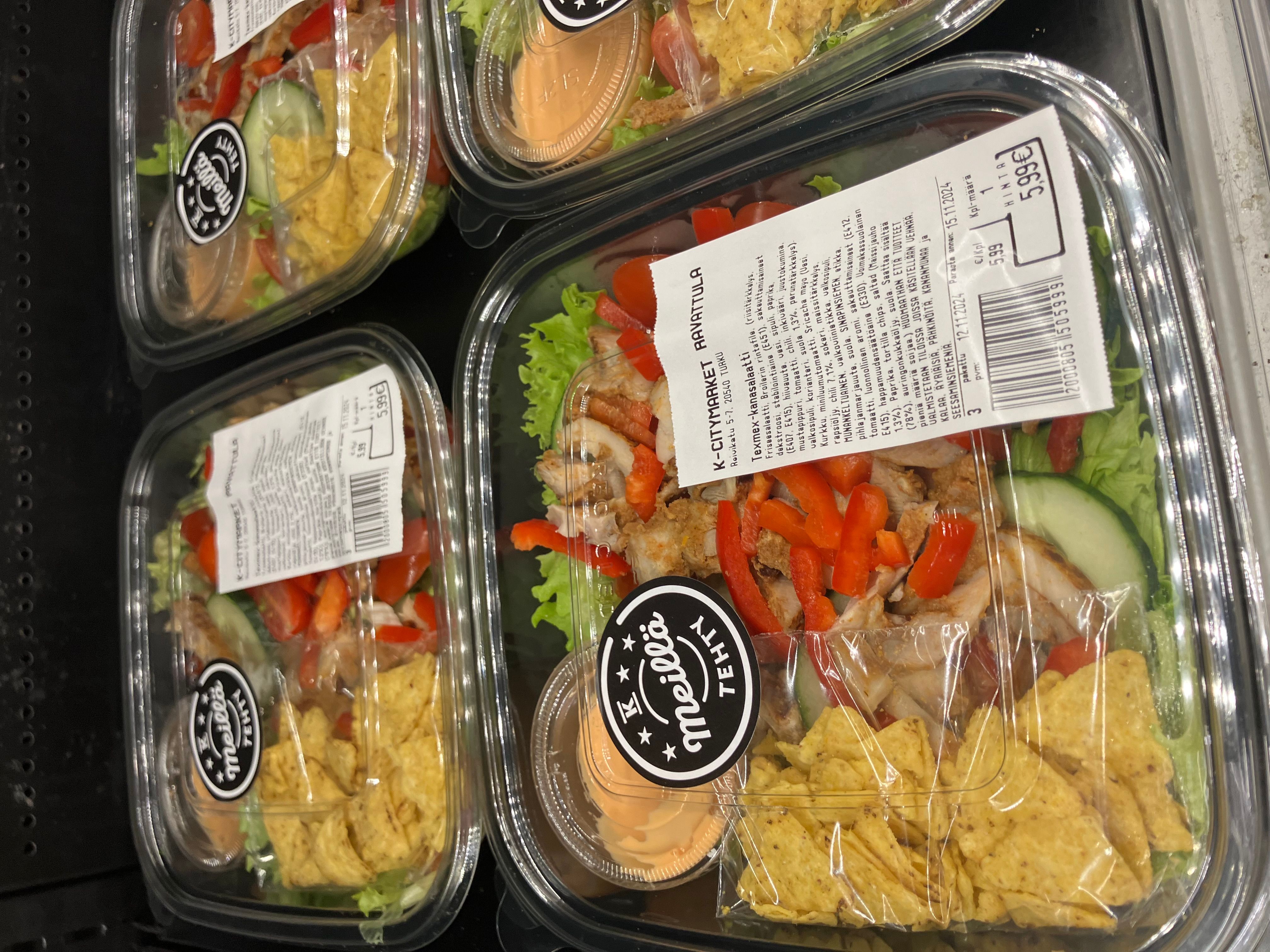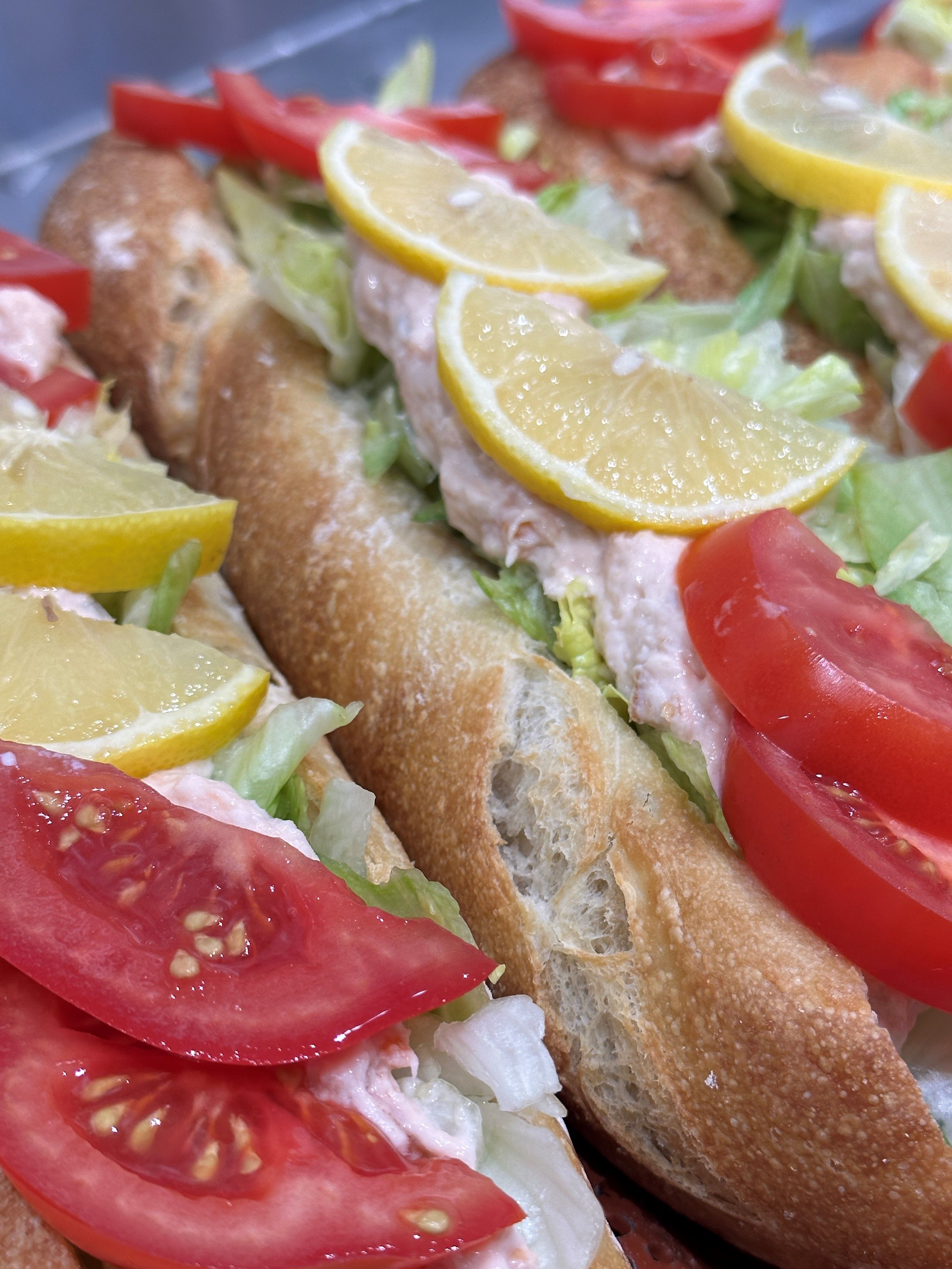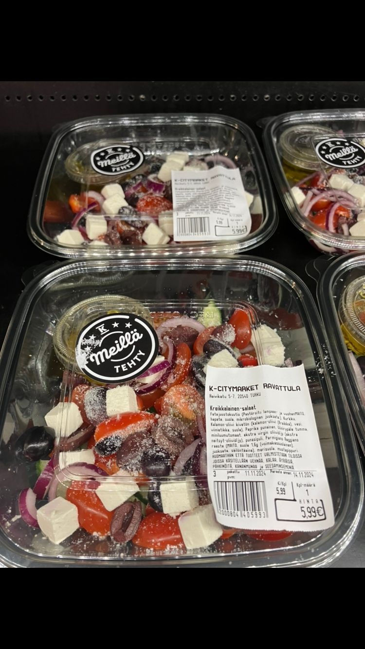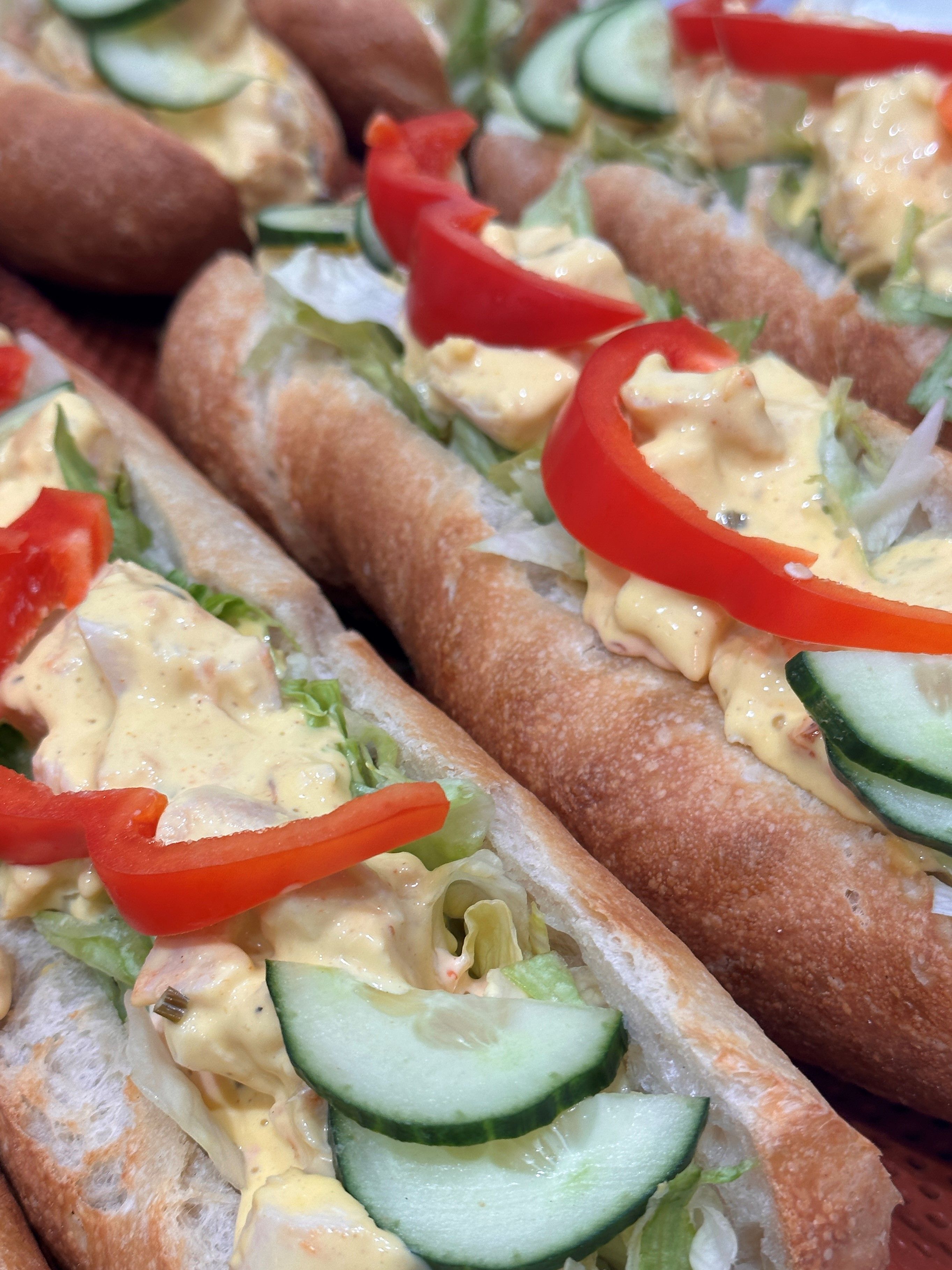 Meidän keittiössä valmistettuja, herkkuja salaatteja, patonkeja sekä paljon muuta!