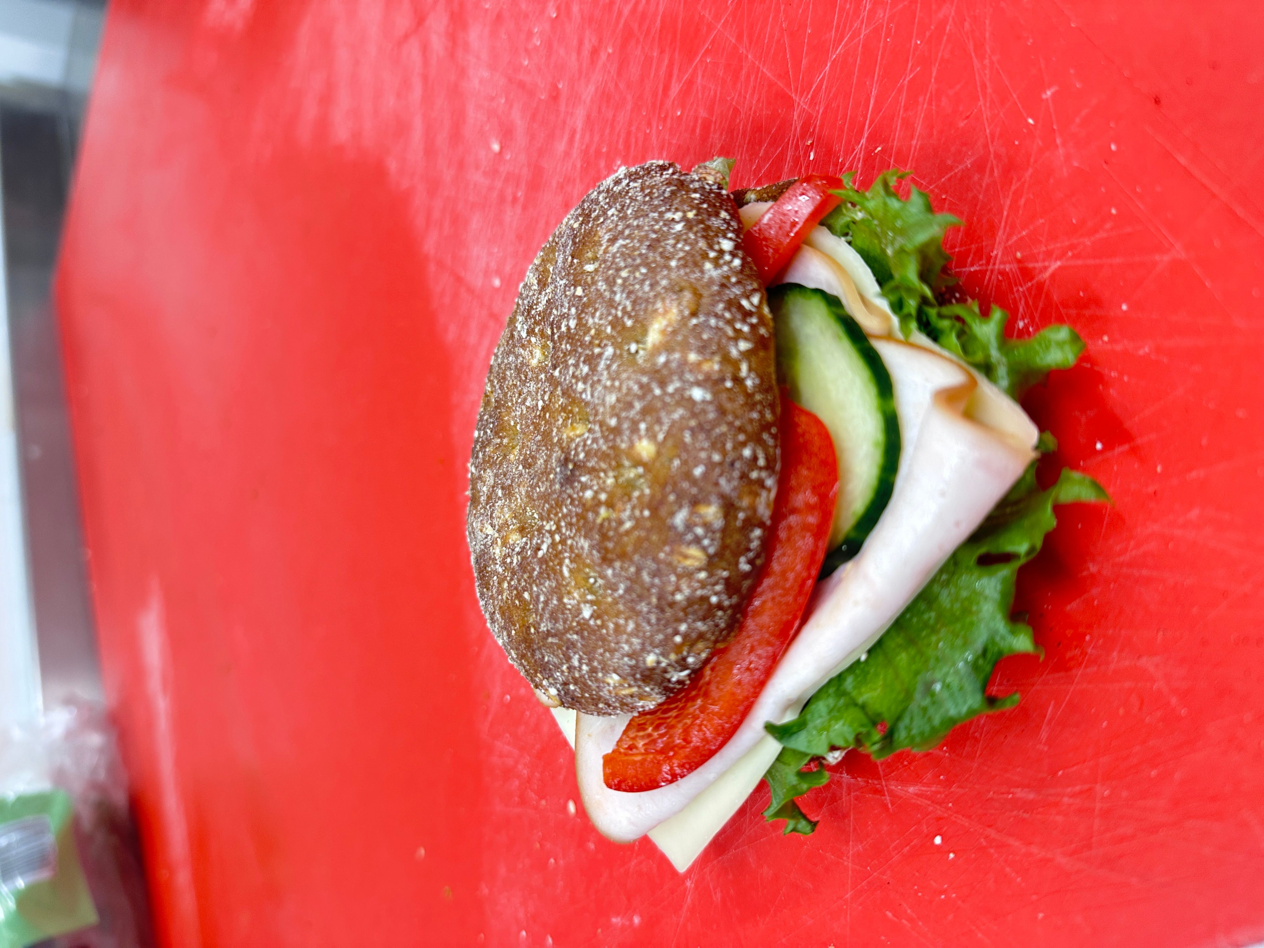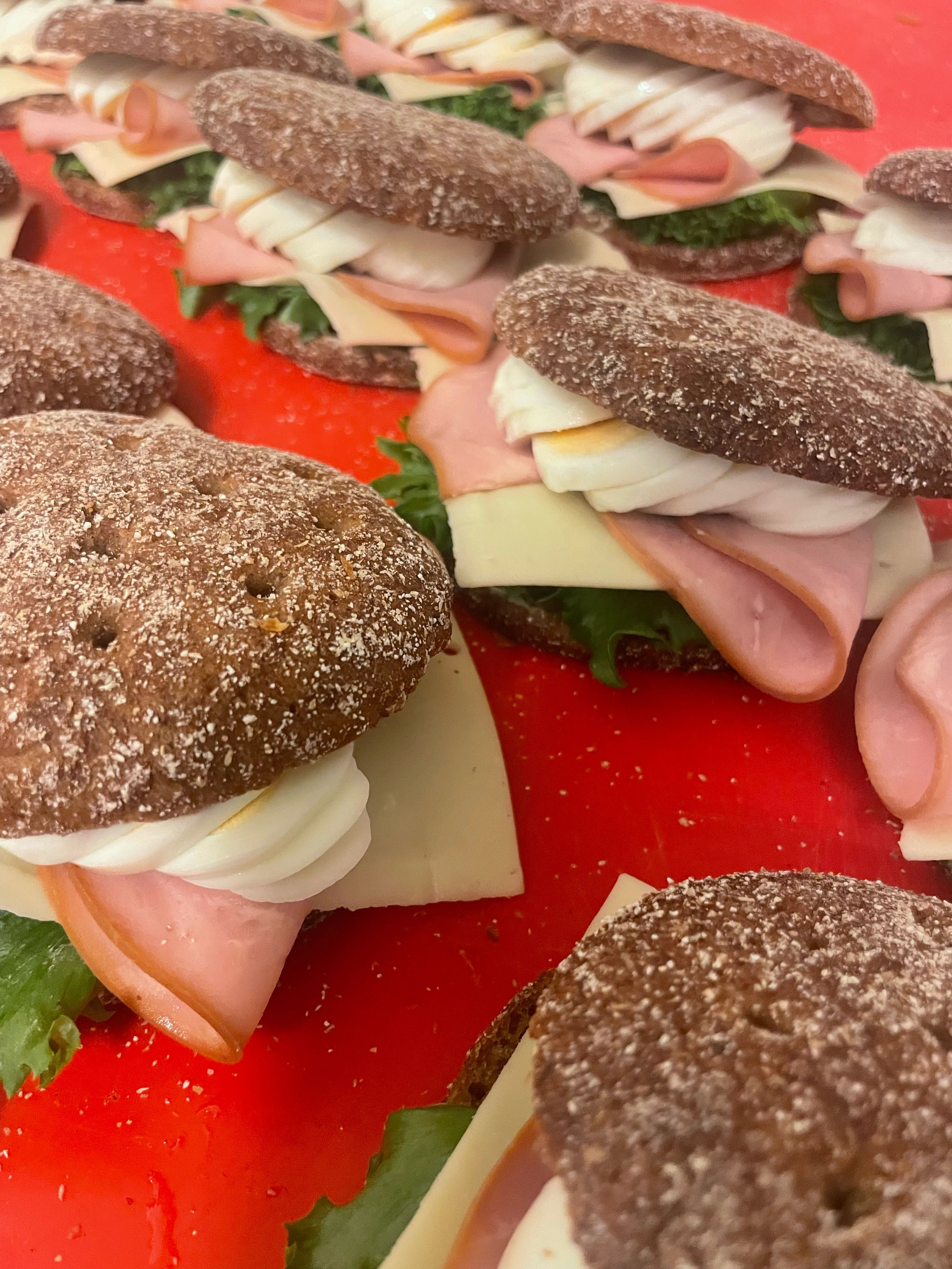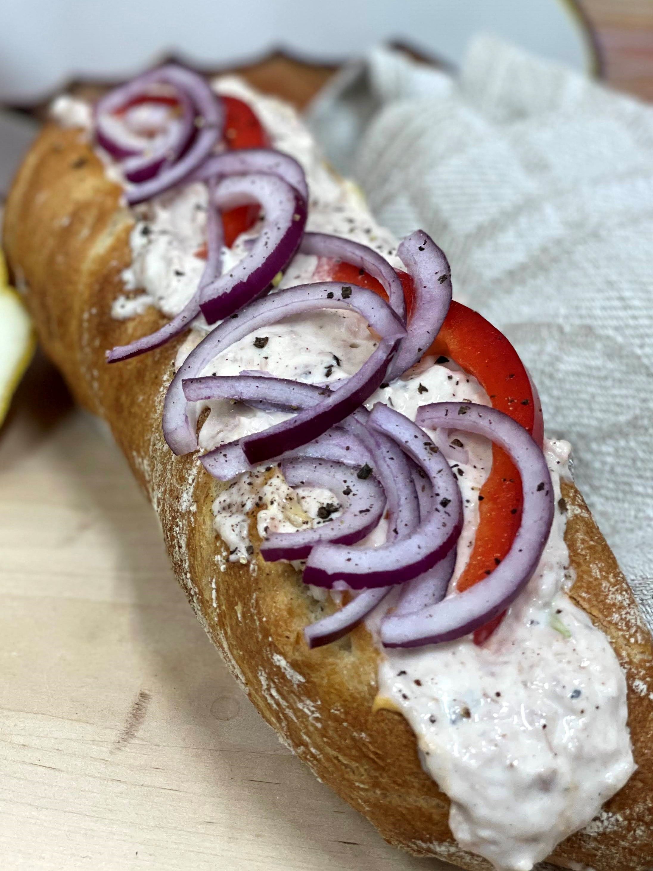 Meidän keittiössä valmistettuja, herkkuja salaatteja, patonkeja sekä paljon muuta!