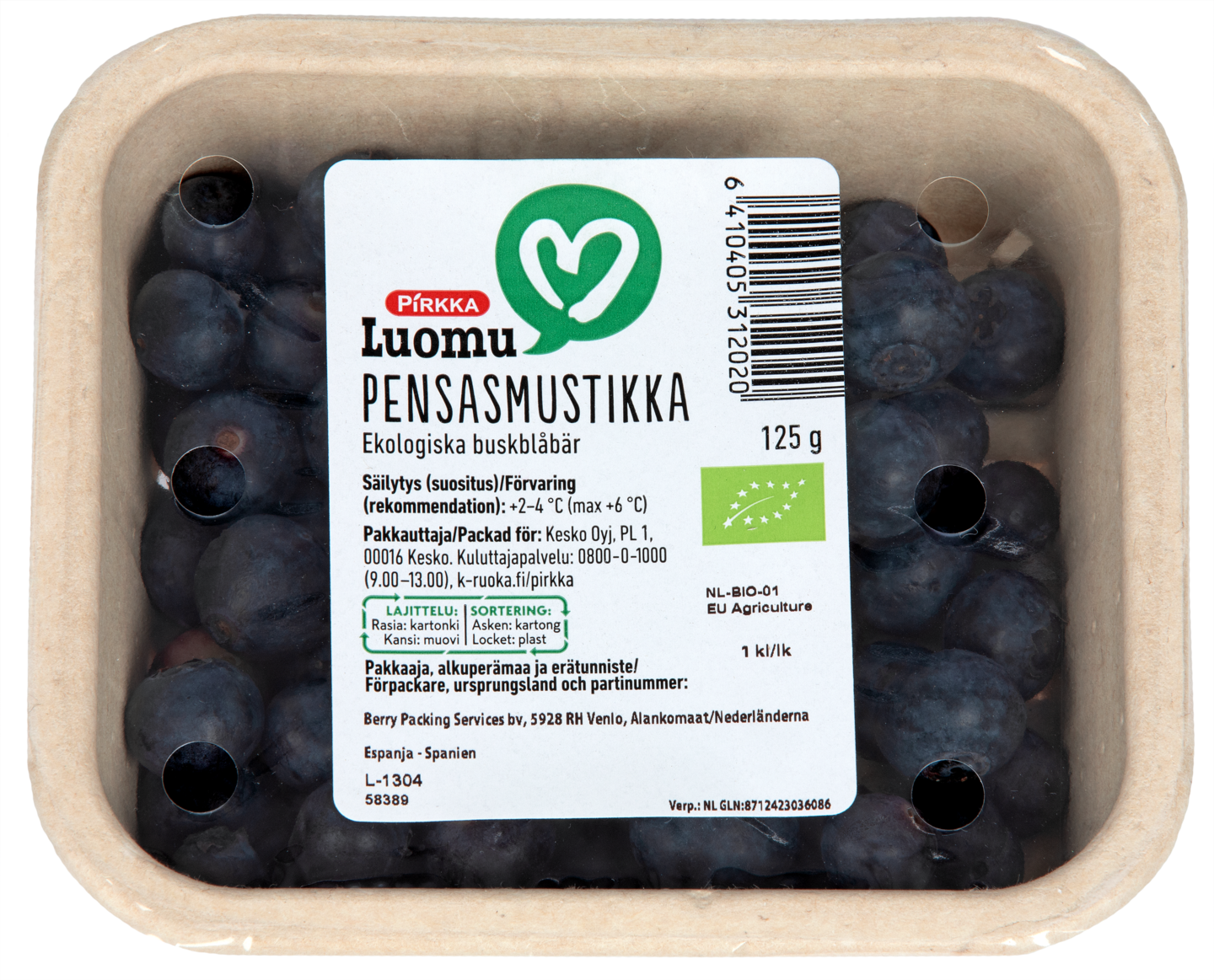 Pirkka marjaduo vadelma/pensasmustikka 250g 1lk