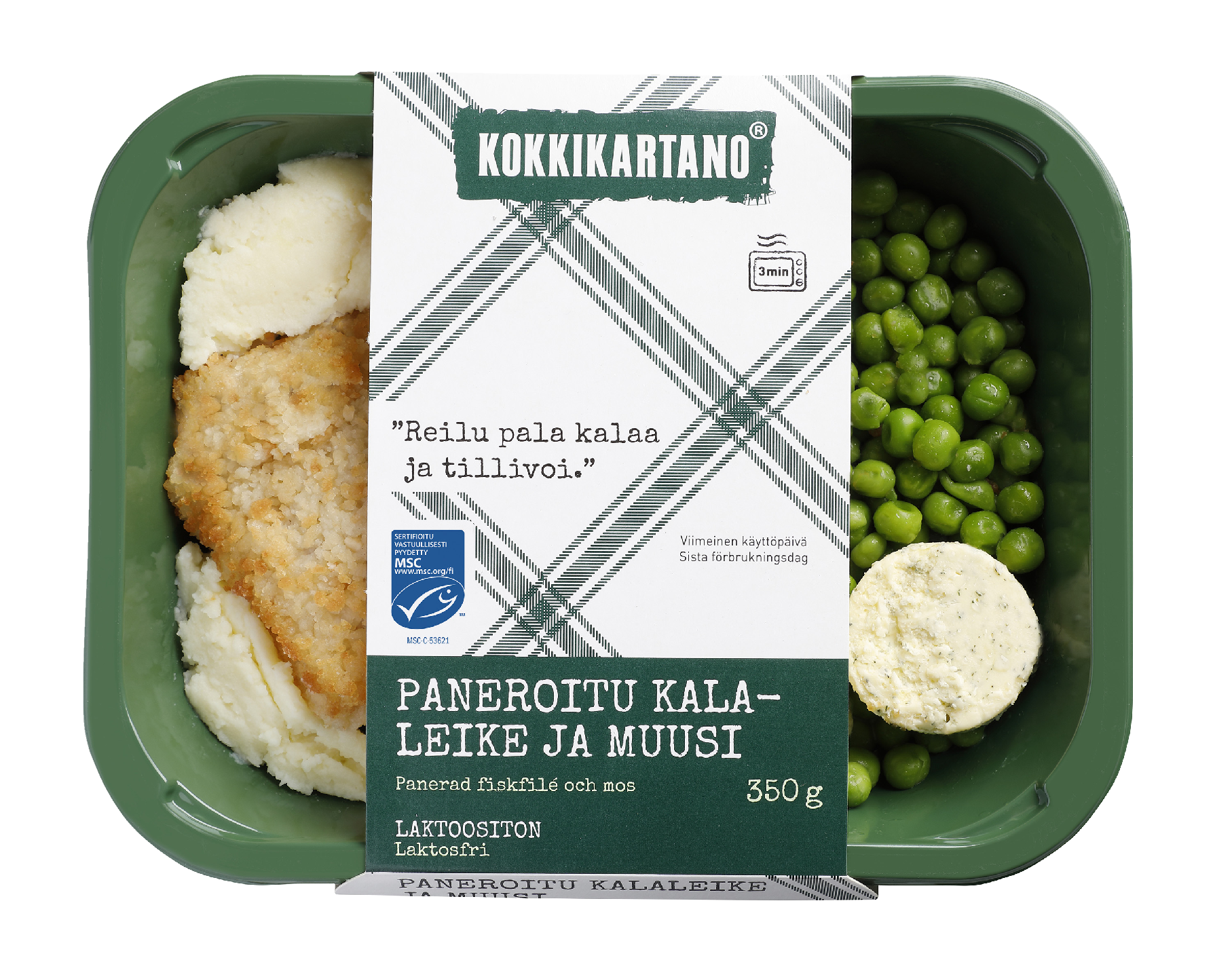 Kokkikartano paneroitu kalaleike ja muusi 350g