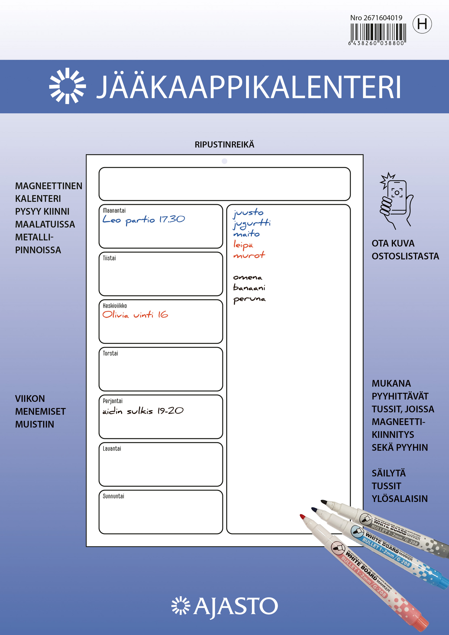 Ajasto, jääkaappikalenteri, seinäkalenteri