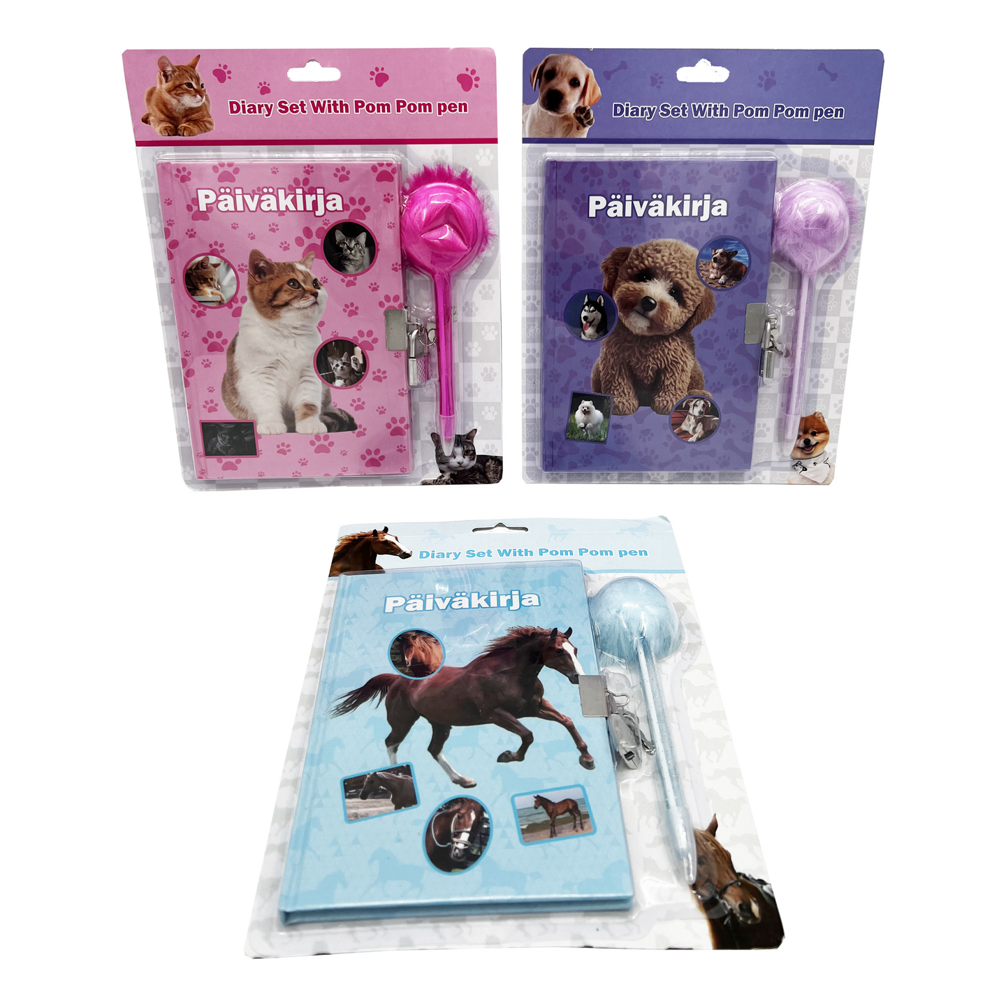Eläin päiväkirja pompom kynällä