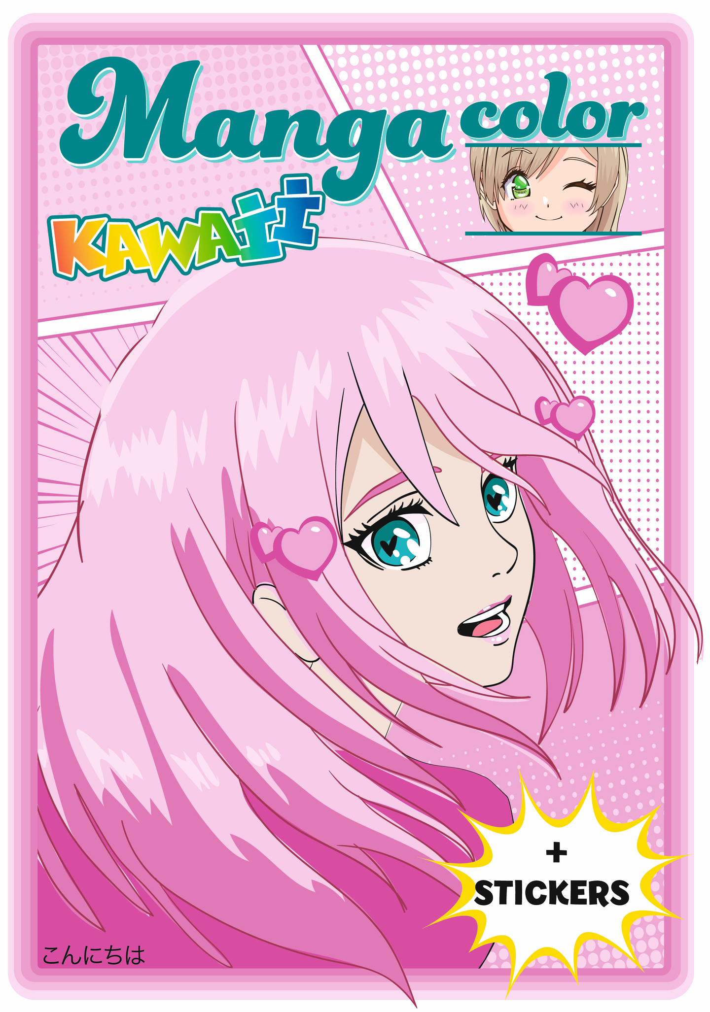 Manga Color Kawaii + Stickers, sis. 64 sivua + 2 sivua tarroja.