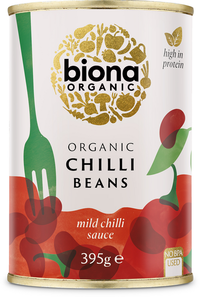 Biona Luomu Chilipapu punainen kidneypapu chilikastikkeessa 395g