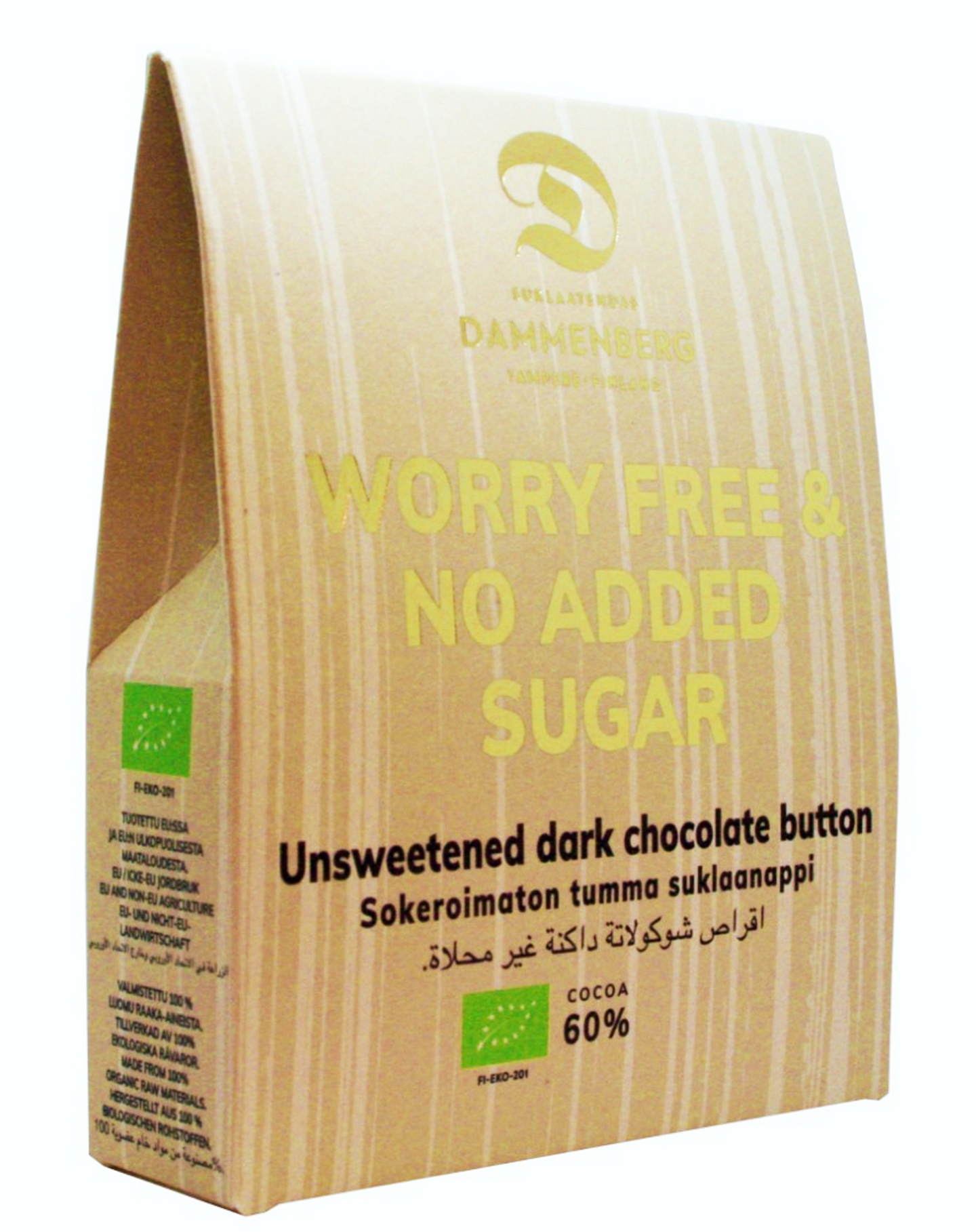 Dammenberg Luomu, vegaani, soijaton, sokeroimaton suklaanappi 90g