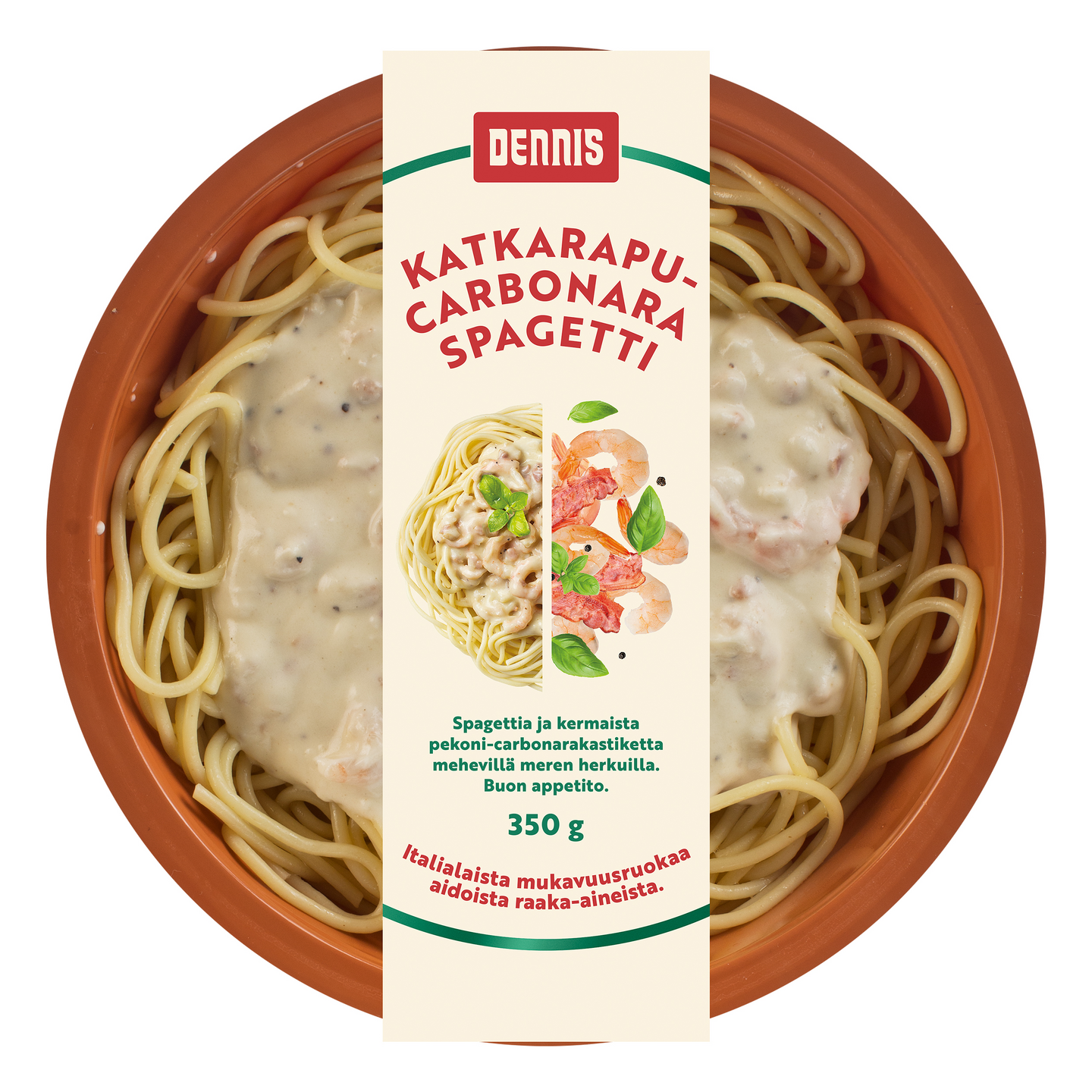 Dennis katkarapu-carbonara spaghetti 350g
