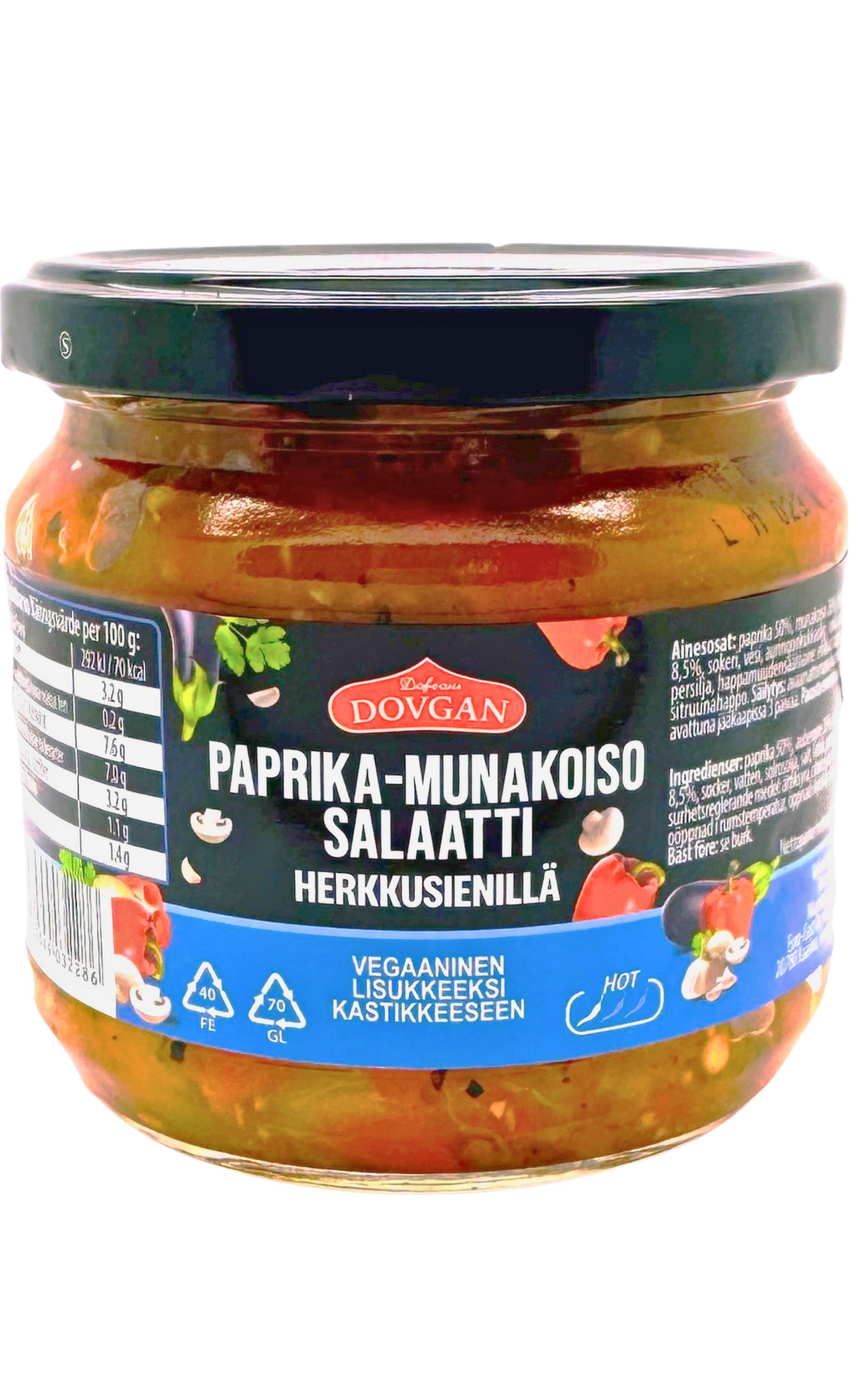 Dovgan paprika-munakoiso salaatti herkkusienillä 350 g
