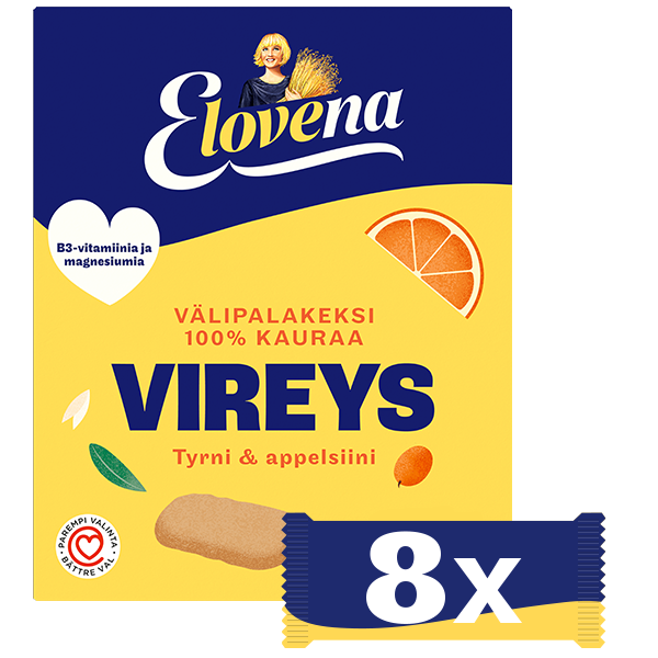 Elovena välipalakeksi 8x30g vireys tyrni appelsiini