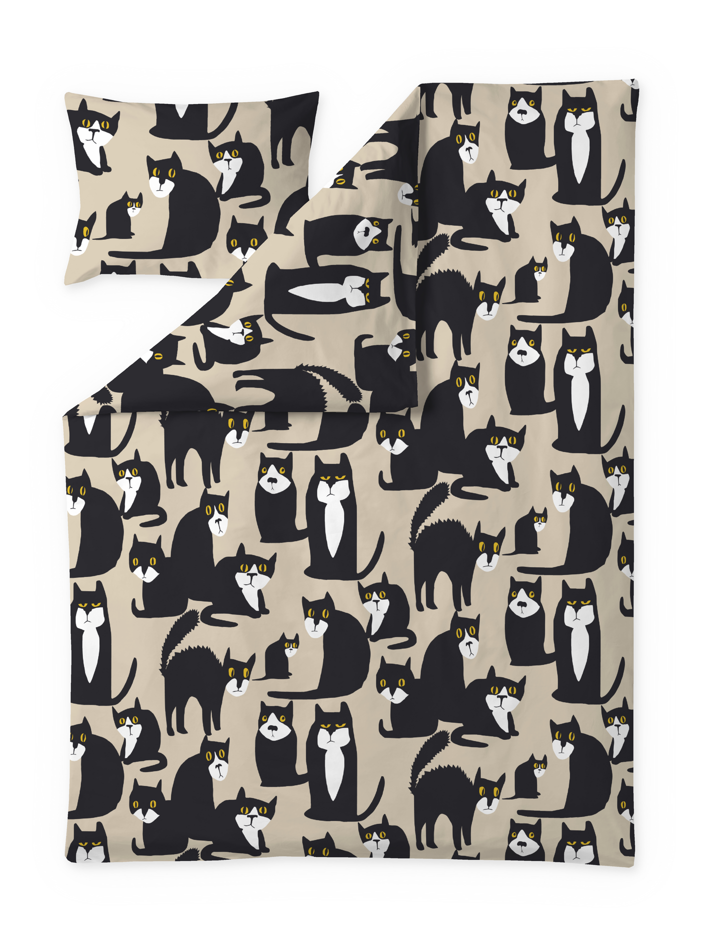 Finlayson Spot the dog pussilakanasetti 150x210 cm hiekka-musta GOTS