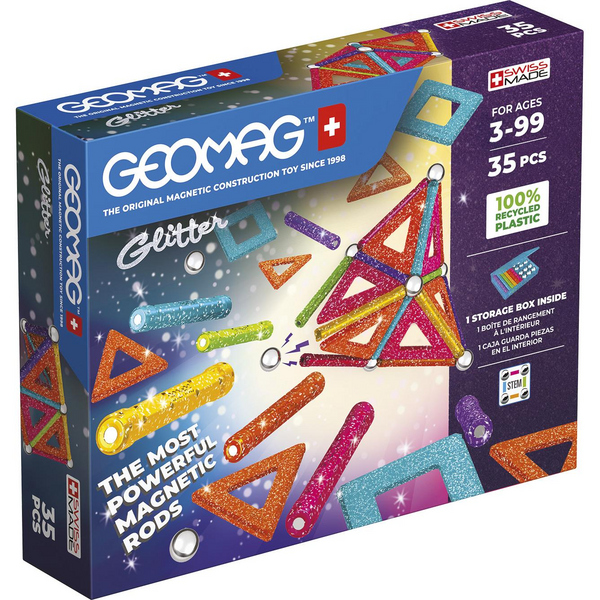 Geomag Glitter Panels kimaltava magneettinen rakennussarja 35 osaa