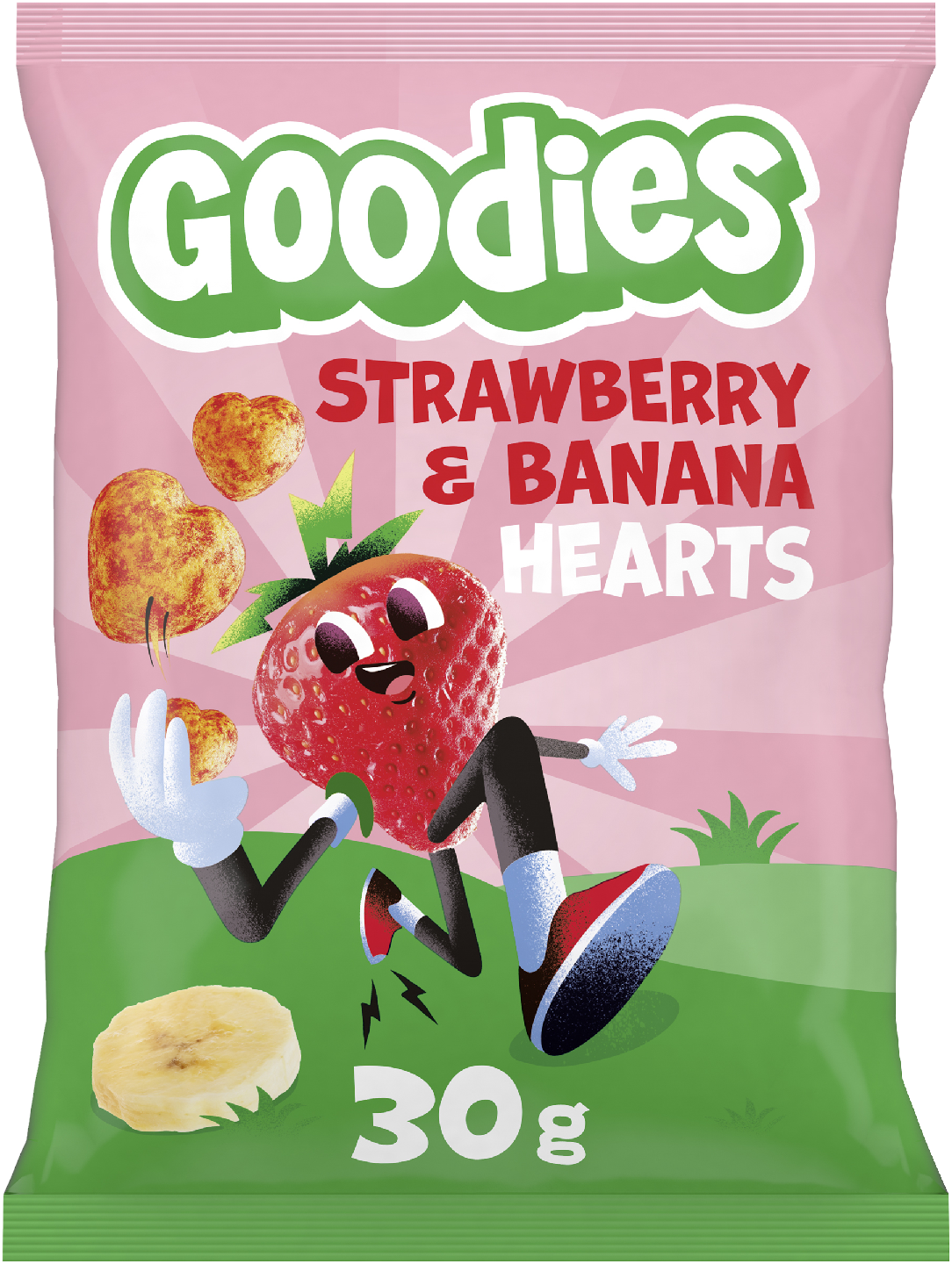 Goodies Crunchy Hearts maissinaksu 30g banaani-mansikka