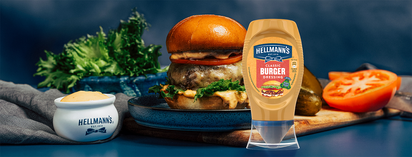 Hellmann’s tietää mitä hampurilainen kaipaa: Classic Burger -kastike nostaa hampurilaisesi uudelle tasolle. Mehevän täyteläinen ja sopivan mausteinen majoneesikastike maistuu koko perheelle, ja sopii hampurilaisten lisäksi myös dipiksi – esimerkiksi ranskanperunoille. Valmistettu vapaiden kanojen munista. Tutustu, maista ja ihastu!