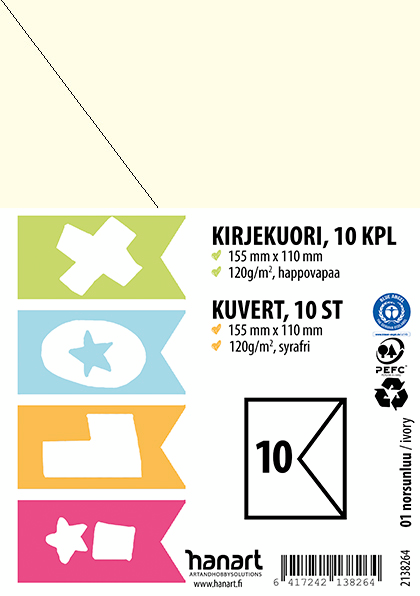 Ilox kirjekuori C6 10kpl 120g luonnonvalkoinen