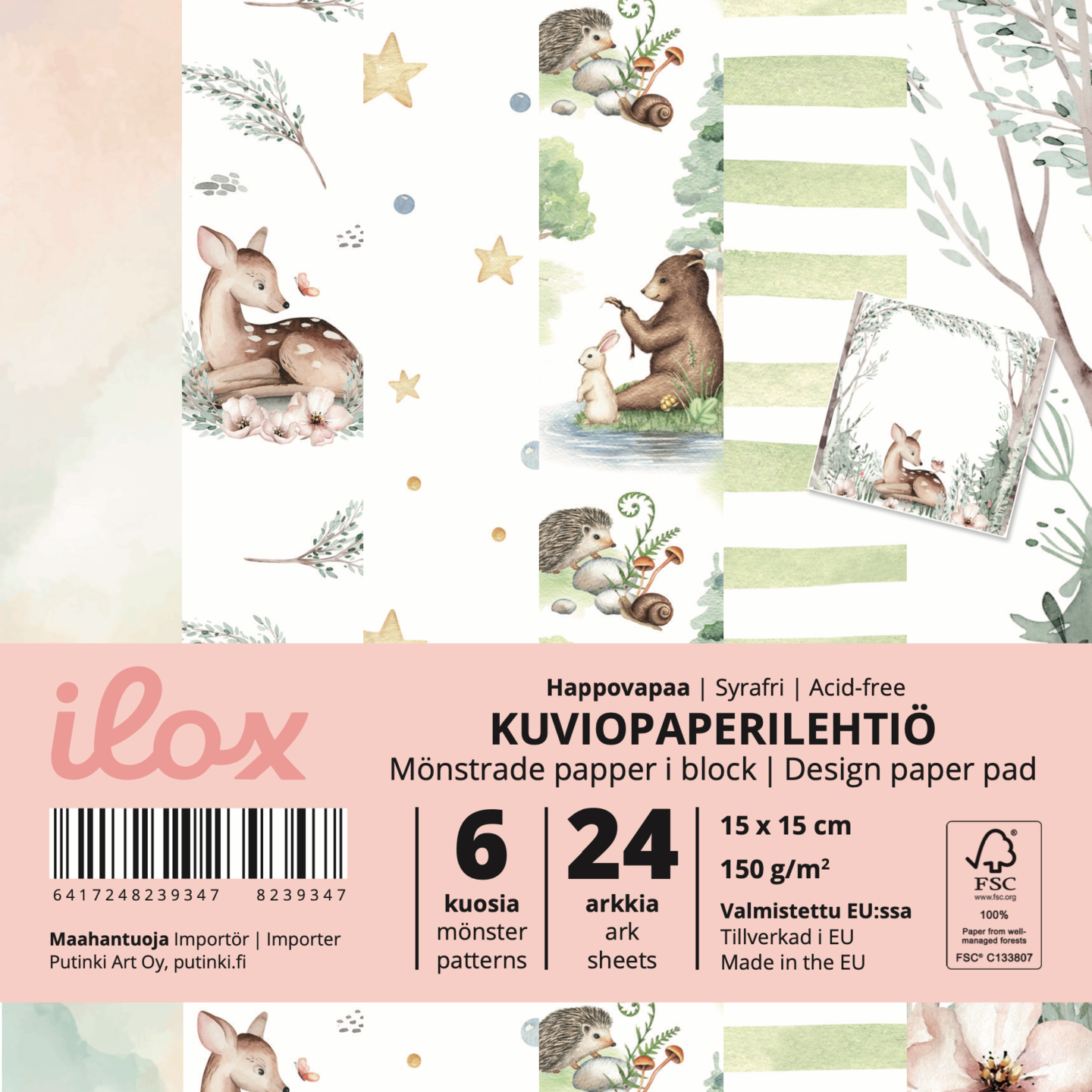 ILOX kuviopaperilehtiö Metsän eläimet 15x15 cm, 24 arkkia