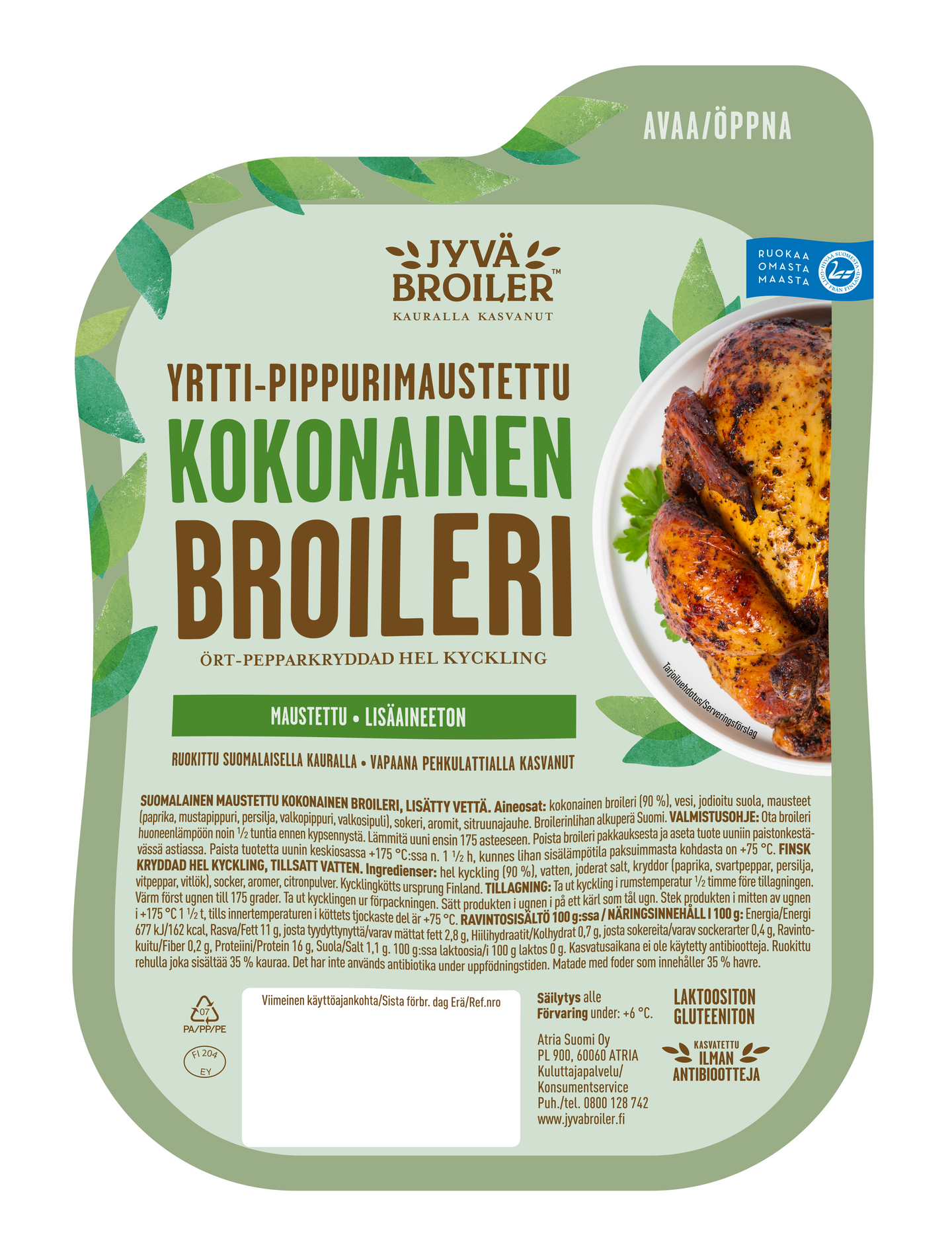 Jyväbroiler Yrtti-pippurimaustettu kokonainen broileri n. 1,4 kg